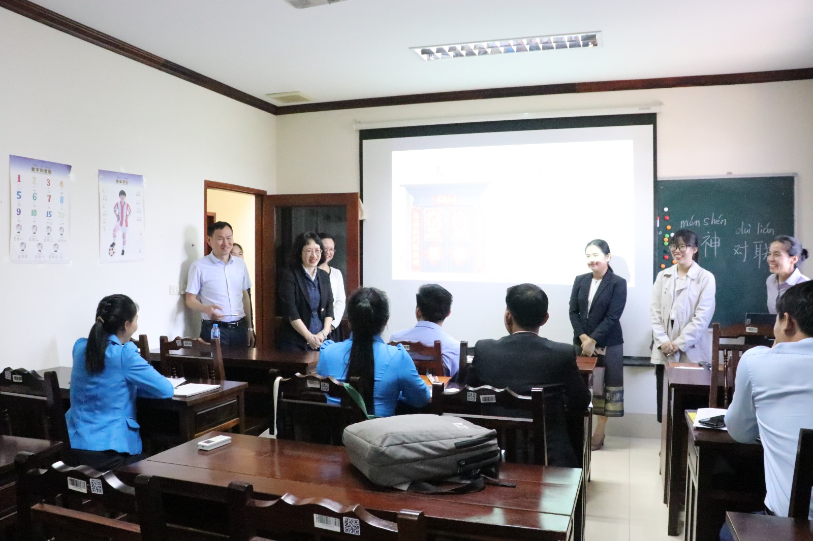 - ລົງມາຢ້ຽມຢາມ ແລະເບິ່ງບັນຍາການການຮຽນ-ການສິດສອນ ພາສາຈີນ ໃຫ້ກັບພະນັກງານ, ຄູ-ອາຈານ ສມປຊ.