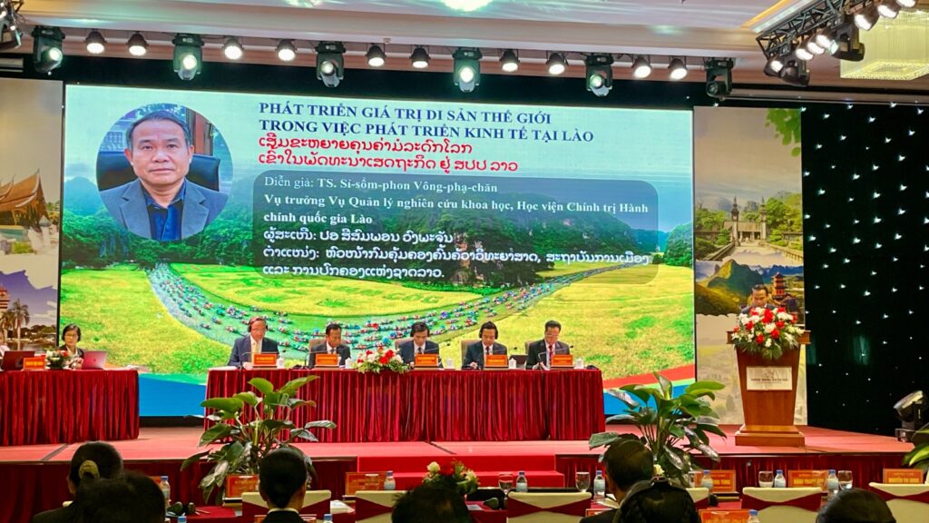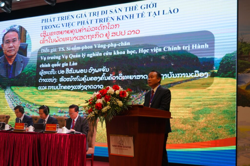 ໃນໂອກາດດັ່ງກ່າວ ທ່ານ ຮສ ພູວົງ ອຸ່ນຄຳແສນ ໄດ້ມີຄໍາເຫັນຕໍ່ກອງປະຊຸມວ່າ: ການຈັດກອງປະຊຸມສໍາມະນາວິທະຍາສາດໃນຄັ້ງນີ້ ສຸດທີ່ມີຄວາມໝາຍຄວາມສຳຄັນເປັນຢ່າງຍິ່ງ ແມ່ນເວທີການຮ່ວມມືທາງດ້ານວິທະຍາສາດ ຂອງສອງປະເທດ ລາວ ແລະ ຫວຽດນາມ ຊຶ່ງຈະໄດ້ສົນທະນາປຶກສາຫາລື ແລະ ແລກປ່ຽນບົດຮຽນເຊິ່ງກັນ ແລະ ກັນ ກ່ຽວກັບ “ເສດຖະກິດມໍລະດົກ” ເຂົ້າໃຈກົງກັນວ່າ “ມໍລະດົກ” ໝາຍເຖິງ ທຸກສິ່ງ, ທຸກຢ່າງທີ່ເປັນວັດຖຸ ແລະ ວັດຖຸທີ່ມີຄ່າທີ່ພວກເຮົາໄດ້ຮັບການສືບທອດມາຈາກບັນພະບູລຸດ. ເພາະສະນັ້ນ, “ມໍລະດົກ” ບໍ່ພຽງແຕ່ເປັນເອກະລັກຂອງຊາດເທົ່ານັ້ນ ແຕ່ຍັງເປັນຊັບສິນ ຫຼື ສົມບັດທີ່ມີຄຸນຄ່າທີ່ສາມາດນໍາໃຊ້ເປັນທ່າແຮງໃນການພັດທະນາເສດຖະກິດ-ສັງຄົມ ຂອງປະເທດ. ສປປ ລາວ ຂອງພວກເຮົາ ມີມໍລະດົກຫຼາຍປະເພດ ຊຶ່ງໃນນັ້ນລວມມີ: 1). ມໍລະດົກທາງທໍາມະຊາດ; 2). ມໍລະດົກທາງປະຫວັດສາດ; 3.) ມໍລະດົກທາງວັດທະນະທໍາ. ໂດຍອີງໃສ່ທັດສະນະ ແລະ ແນວທາງແຜນນະໂຍບາຍຂອງພັກປະຊາຊົນປະຕິວັດລາວ ກ່ຽວກັບມໍລະດົກ ຊຶ່ງລັດເຮົາກໍໄດ້ມີຍຸດທະສາດ, ແຜນການ, ກົດໝາຍ ແລະກົດລະບຽບຕ່າງໆ ໃນການຄຸ້ມຄອງ ແລະ ນຳໃຊ້ມໍລະດົກດັ່ງກ່າວ ເຂົ້າໃນການພັດທະນາເສດຖະກິດ ດ້ວຍຫຼາຍຮູບການ. ປັດຈຸບັນ, ສປປ ລາວ ມີສະຖານທີ່ທ່ອງທ່ຽວສະຖານທາງທຳມະຊາດ, ປະຫວັດສາດ ແລະ ວັດທະນະທຳ ທີ່ເປີດບໍລິການແລ້ວ 800 ກວ່າແຫ່ງ. ໃນນັ້ນ, ລວມມີສະຖານທີ່ທ່ອງທຽວເປັນມໍລະດົກໂລກ 4 ແຫ່ງ (ນະຄອນຫຼວງພະບາງ, ວັດພູຈຳປາສັກ, ທົ່ງໄຫຫີນຊຽງຂວາງ ແລະປ່າສະຫງວນແຫ່ງຊາດຫີນໜາມໜໍ່). ແຕ່ເຖິງຢ່າງໃດກໍຕາມ, ການພັດທະນາເສດຖະກິດມໍລະດົກ ຢູ່ ສປປ ລາວ ກໍຍັງມີຂໍ້ຄົງຄ້າງ ແລະສິ່ງທ້າທາຍຫຼາຍປະການ ເປັນຕົ້ນແມ່ນ: 1). ການປ່ຽນແປງ ແລະຄວາມຍືນຍົງຂອງມໍລະດົກ; 2). ຂໍ້ຂັດແຍ້ງລະຫວ່າງການອະນຸລັກຮັກສາ ແລະຄວາມຕ້ອງການຂອງການພັດທະນາໃນໄລຍະໃໝ່; 3). ສປປ ລາວ ຍັງຂາດຊັບພະຍາກອນມະນຸດ ທີ່ມີຄວາມຮູ້, ຄວາມສາມາດ ແລະຂາດທຶນຮອນຈຳນວນຫຼວງຫຼາຍ ໃນການຂຸດຄົ້ນ.