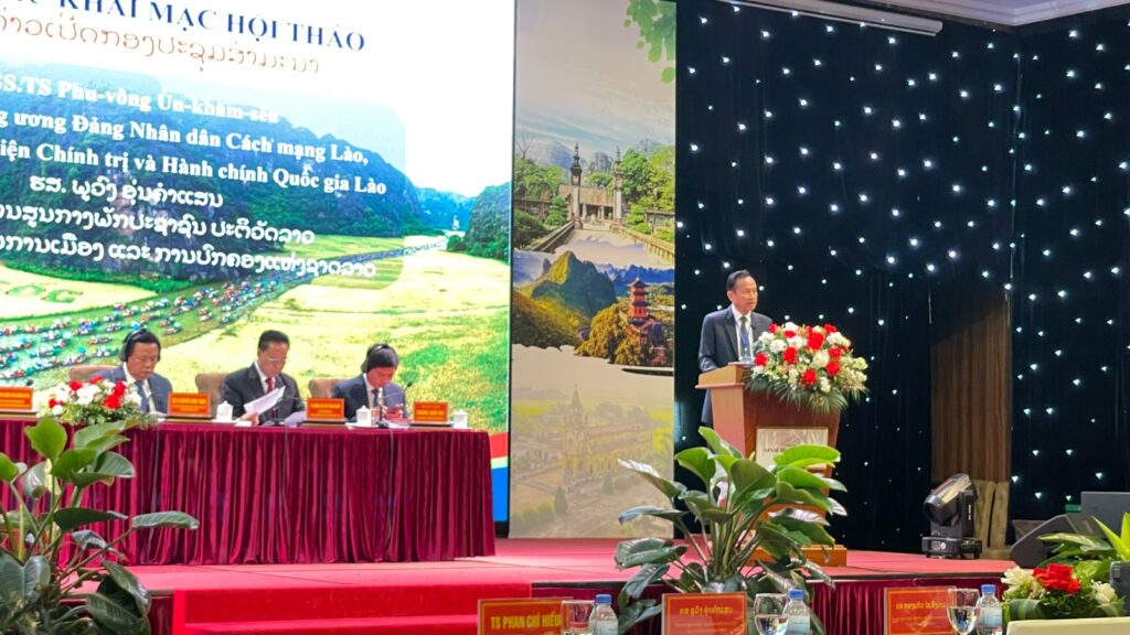 ກອງປະຊຸມສຳມະນາວິທະຍາສາດສາກົນ 2 ຊາດ 4 ຝ່າຍ ຄື: ສະຖາບັນການເມືອງ ແລະ ການປົກຄອງແຫ່ງຊາດ ແລະ ສະຖາບັນວິທະຍາສາດເສດຖະກິດ ແລະ ສັງຄົມແຫ່ງຊາດ ຂອງ ສປປ ລາວ, ສະຖາບັນບັນດິດວິທະຍາສາດສັງຄົມຫວຽດນາມ ແລະ ສະຖາບັນການເມືອງແຫ່ງຊາດໂຮ່ຈິມິນ ຂອງ ສສ ຫວຽດນາມ. ໃນລະຫວ່າງວັນທີ 29-30 ກໍລະກົດ ຜ່ານມານີ້ ທີ່ ແຂວງນິ່ງບິ່ງ ສສ ຫວຽດນາມ. ຄະນະຜູ້ແທນຝ່າຍລາວ ນໍາພາໂດຍ ທ່ານ ຮສ ພູວົງ ອຸ່ນຄຳແສນ ກຳມະການສູນກາງພັກ, ເລຂາຄະນະບໍລິຫານງານພັກ, ຫົວໜ້າ ສມປຊ ແລະ ທ່ານ ປອ ກອງແກ້ວ ໄຊສົງຄາມ ກຳມະການສູນກາງພັກ, ປະທານສະຖາບັນວິທະຍາສາດເສດຖະກິດ ແລະ ສັງຄົມແຫ່ງຊາດລາວ ພ້ອມດ້ວຍຄະນະ, ຄະນະຜູ້ແທນຝ່າຍຫວຽດນາມ ນໍາພາໂດຍ ສະຫາຍ ຫວຽນ ຊວັ່ນ ຖັງ ກຳມະການກົມການເມືອງສູນກາງພັກ, ຫົວໜ້າສະຖາບັນການເມືອງແຫ່ງຊາດ ໂຮ່ຈິມິນ; ສະຫາຍ ຟ່ານ ຈີ ຫຽວ ປະທານສະຖາບັນດິດວິທະຍາສາດສັງຄົມຫວຽດນາມ; ພ້ອມດ້ວຍຄະນະ.
