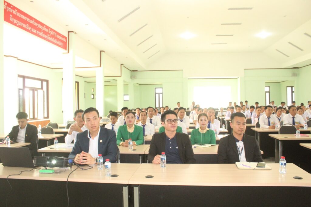 ໃນຕອນແລງວັນທີ 6 ສິງຫາ 2025 ຢູ່ທີ່ສະໂມສອນໂຮງຮຽນການເມືອງ ແລະ ການປົກຄອງ ແຂວງຊຽງຂວາງ ໄດ້ຈັດພິທີລາຍງານເພີ່ມ ໃນຫົວຂໍ້: “ພາລະບົດບາດ ຂອງທະນາຄານແຫ່ງ ສປປລາວ ແລະການຄຸ້ມຄອງທະນາຄານທຸລະກິດ ຢູ່ສາຂາພາກເໜືອ ແຂວງຊຽງຂວາງ”.ພາຍໃຕ້ການເປັນປະທານ ຂອງທ່ານ ສີວອນ ບຸດດາຈັນ ກຳມະການພັກແຂວງ, ເລຂາໜ່ວຍພັກ, ຫົວໜ້າໂຮງຮຽນການເມືອງ ແລະ ການປົກຄອງ ແຂວງຊຽງຂວາງ, ມີທ່ານ ສອນສະຫວັນ ສໍພາບມີໄຊ ຮອງຫົວໜ້າສາຂາທະນາຄານແຫ່ງ ສປປ ລາວ ພາກເໜືອ ແຂວງຊຽງຂວາງ, ມີບັນດາແຂກຖືກເຊີນຈາກທະນາຄານ, ມີພະນັກງານຄູ-ອາຈານ ແລະນັກສຶກສາທິດສະດີການ ເມືອງຂັ້ນກາງ ຮຸ່ນທີ IV ແລະນັກສຶກສາ ຂັ້ນຕົ້ນ ຮຸ່ນທີ III ເຂົ້າຮ່ວມຢ່າງພ້ອມພຽງທັງໝົດ 158 ສະຫາຍ, ຍິງ 50 ສະຫາຍ.