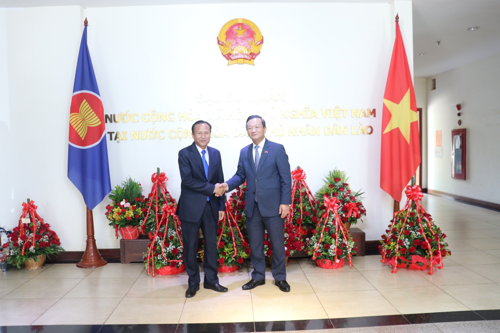 ໃນໂອກາດນີ້, ທ່ານ ຮສ ພູວົງ ອຸ່ນຄຳແສນ ໄດ້ຕາງໜ້າໃຫ້ຄະນະພັກ-ຄະນະນໍາ ສມປຊ ສະແດງຄວາມຊົມເຊີຍ ແລະ ອວຍພອນທ່ານ ຫງວຽນ ມິງ ເຕີມ ພ້ອມດ້ວຍພະນັກງານສະຖານທູດ ແລະ ຜ່ານໄປຍັງຄະນະພັກ-ຄະນະນໍາ ກໍຄືການນໍາພັກ-ລັດ ຂອງຫວຽດນາມ ແລະໄດ້ສະແດງຄວາມຊົມເຊີຍທີ່ເຫັນວ່າ ຕະຫຼອດໄລຍະ 8 ທົດສະວັດຜ່ານມາ ສະຫາຍຫວຽດນາມ ສາມາດຍາດໄດ້ຜົນສໍາເລັດອັນໃຫຍ່ຫຼວງໃນຫຼາຍດ້ານ, ພ້ອມທັງໄດ້ສະແດງຄວາມເຊື່ອໝັ້ນຢ່າງໜັກແໜ້ນວ່າ ພາຍໃຕ້ການນໍາພາອັນສະຫຼາດສ່ອງໃສຂອງພັກກອມມູນິດຫວຽດນາມ ໂດຍມີທ່ານ ໂຕ ເລິມ ເປັນຜູ້ນໍາພານັ້ນ, ຈະສືບຕໍ່ໄດ້ຮັບຜົນສໍາເລັດອັນໃໝ່ໃຫຍ່ຫຼວງກວ່າເກົ່າ ເພື່ອເຮັດໃຫ້ປະຊາຊົນຫວຽດນາມ ມີຄວາມຮັ່ງມີ, ປະເທດຊາດເຂັ້ມແຂງ, ປະຊາທິປະໄຕ, ຍຸຕິທໍາ ແລະ ສິວິໄລ.