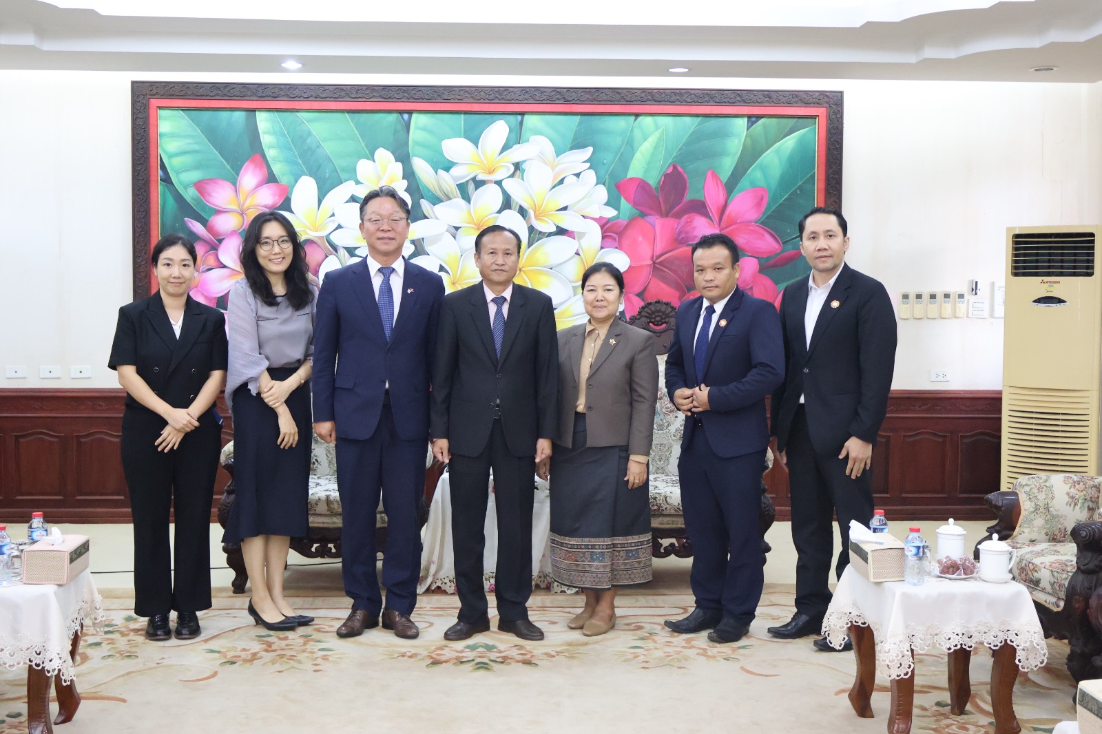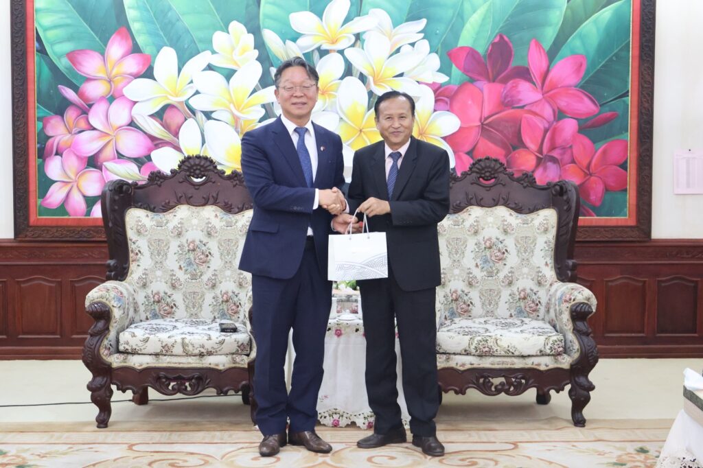 ໃນຕອນແລງວັນທີ 21 ສິງຫາ 2025, ເວລາ 3:00 ທີ່ຫ້ອງຮັບແຂກ ຊັ້ນ 5 ຕຶກ 5 ຊັ້ນ ທ່ານ ຈອງ ຢອງຊູ ເອກອັກຄະລັດຖະທູດ ສ ເກົາຫຼີ ປະຈໍາ ສປປ ລາວ ພ້ອມດ້ວຍຄະນະເຂົ້າຢຽມຢາມຫົວໜ້າສະຖາບັນການເມືອງ ແລະ ການປົກຄອງແຫ່ງຊາດ ໃຫ້ກຽດຕ້ອນຮັບໂດຍ ທ່ານ ຮສ ພູວົງ ອຸ່ນຄໍາແສນ ກຳມະການສູນກາງພັກ, ເລຂາຄະນະບໍລິຫານງານພັກ, ຫົວໜ້າສະຖາບັນການເມືອງ ແລະ ການປົກຄອງແຫ່ງຊາດ ພ້ອມດ້ວຍຄະນະ, ເຊິ່ງມີຜູ້ເຂົ້າຮ່ວມທັງໝົດ 7 ທ່ານ, ຍິງ 3 ທ່ານ.