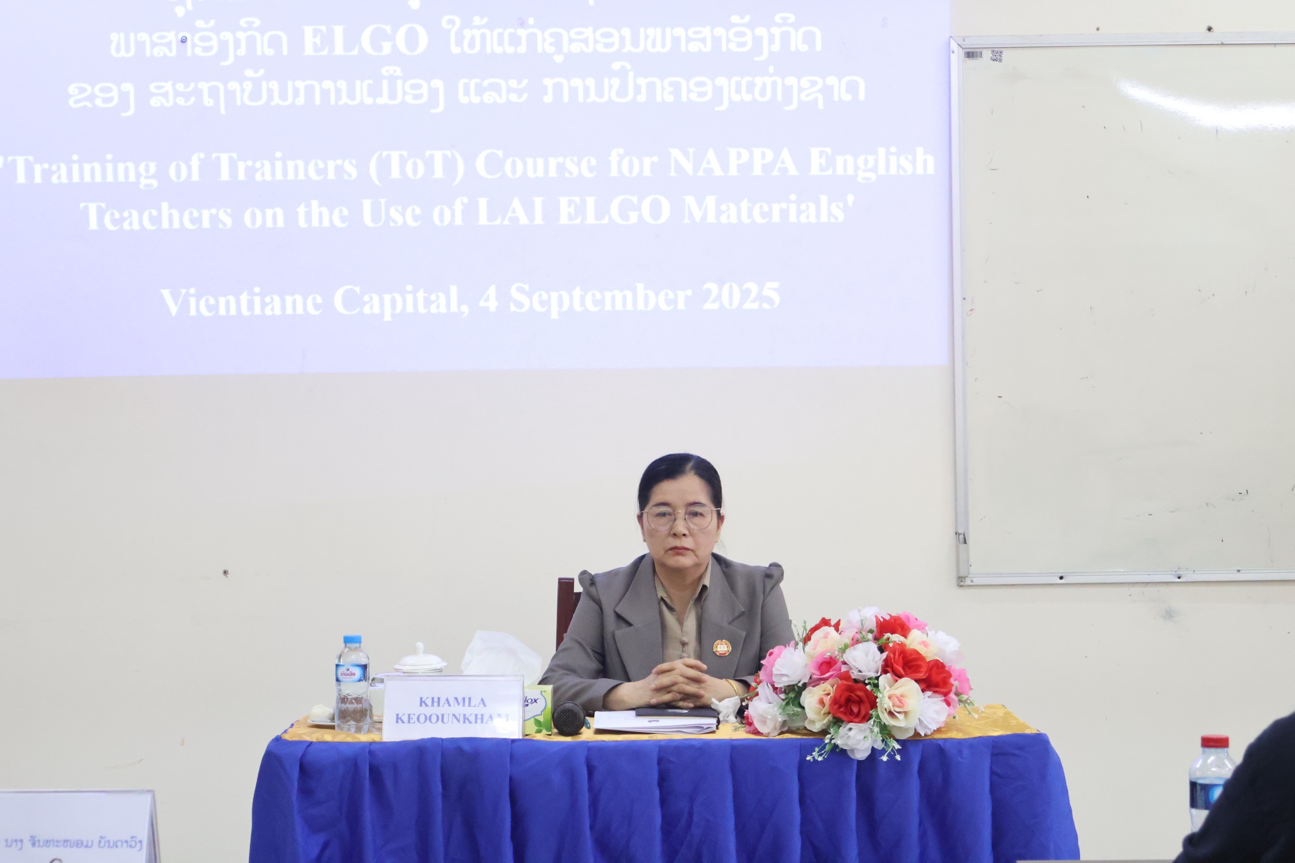 ໃນຕອນເຊົ້້າວັນທີ 4 ກັນຍາ 2025 ທີ່ຫ້ອງຮຽນຊັ້ນ 2 ຕຶກ 5 ຊັ້ນໄດ້ຈັດພິທີປິດຝຶກອົບຮົມຄູ ການນໍາໃຊ້ສື່ການສອນພາສາອັງກິດ ELGO ໃຫ້ແກ່ຄູສອນພາສາອັງກິດ ຂອງສະຖາບັນການເມືອງ ແລະການປົກຄອງແຫ່ງຊາດໃຫ້ກຽດເປັນປະທານ ໂດຍ: ທ່ານ ປທ ນາງຄໍາຫຼ້າ ແກ້ວອຸ່ນຄໍາ, ຮອງຫົວໜ້າສະຖາບັນການເມືອງ ແລະ ການປົກຄອງແຫ່ງຊາດ, ມີຕາງໜ້າຈາກສະຖາບັນລາວອົດສະຕາລີ ປະຈໍາ ສປປ ລາວ, ຕາງໜ້າກົມຈັ້ດຕັ້ງ-ພະນັກງານ ແລະນັກຝຶກອົບຮົມເຂົ້າຮ່ວມທັງໝົດ 17 ທ່ານ, ຍິງ 10 ທ່ານ.