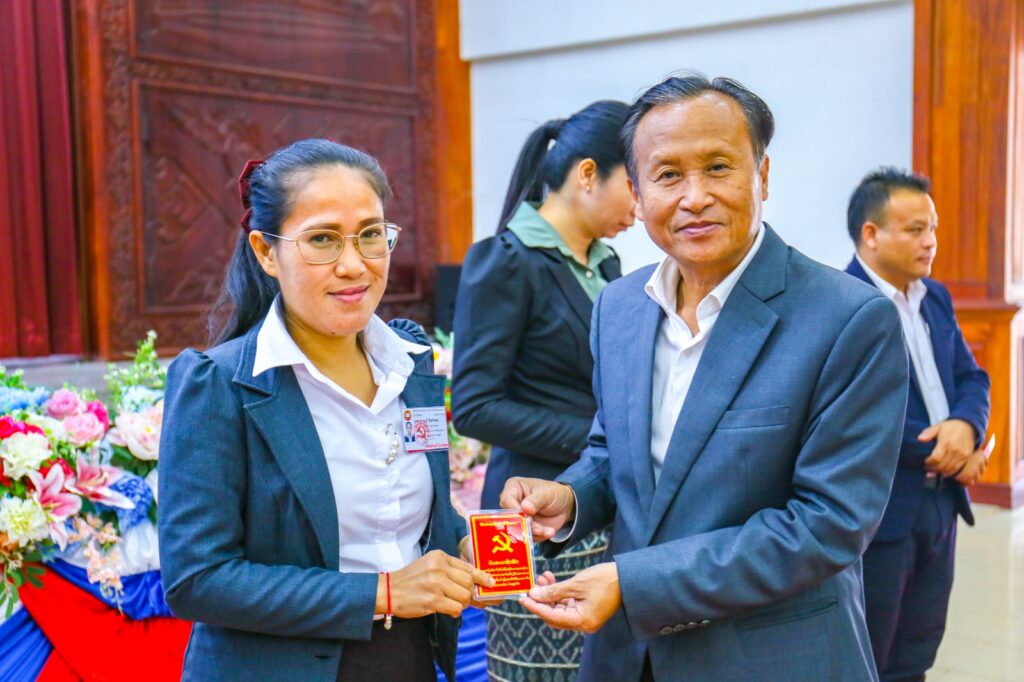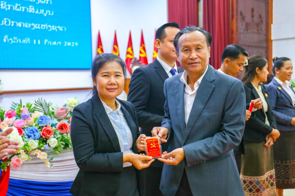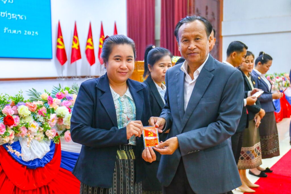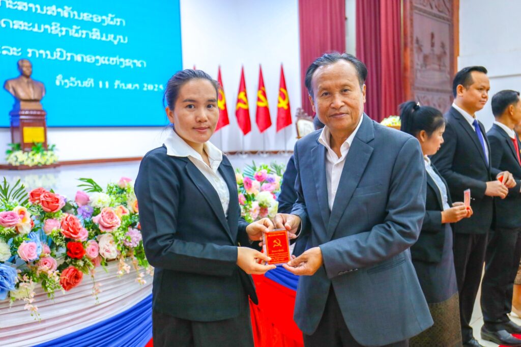 ໃນພິທີ, ໄດ້ມອບບັດສະມາຊິກພັກໃຫ້ ສະມາຊິກພັກທີ່ຄົບມາດຖານເງື່ອນໄຂ ຈຳນວນ 40 ສະຫາຍ, ຍິງ 13 ສະຫາຍຄື: