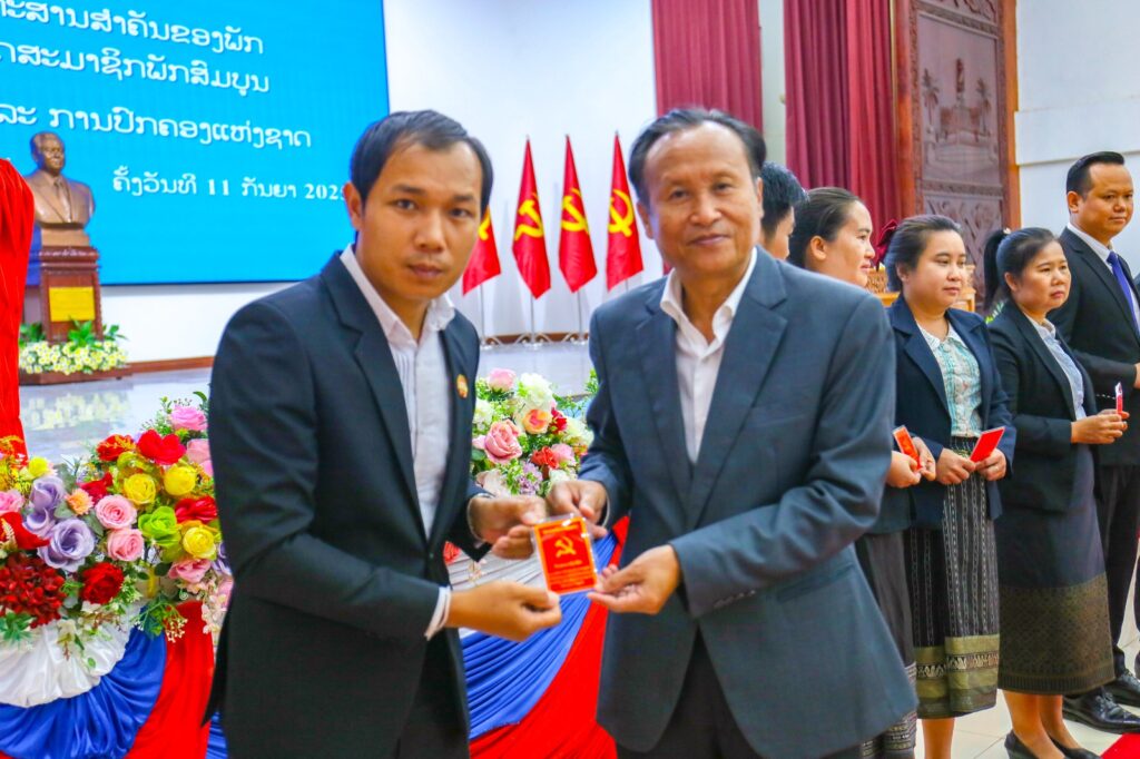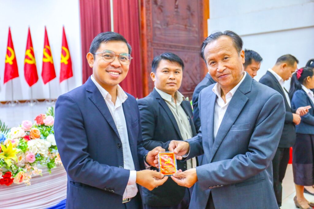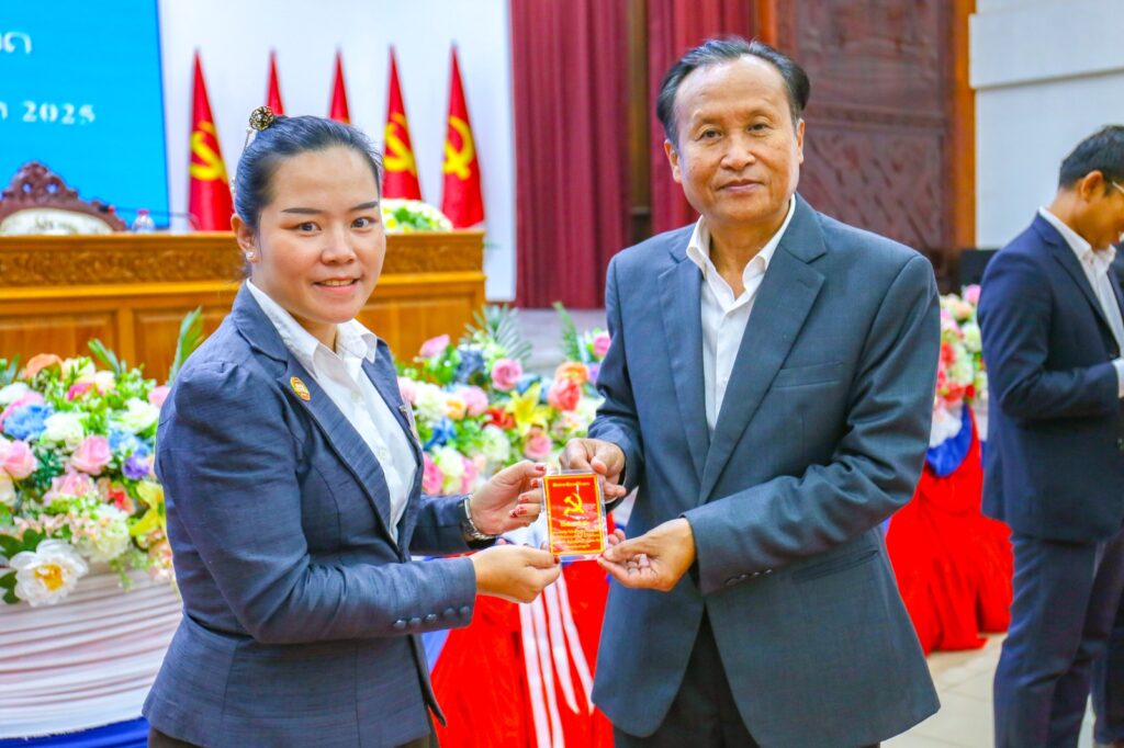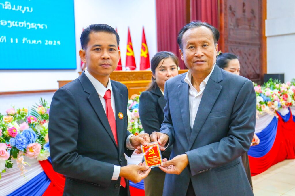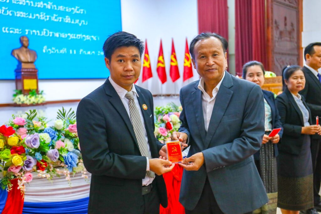 ໃນພິທີ, ໄດ້ມອບບັດສະມາຊິກພັກໃຫ້ ສະມາຊິກພັກທີ່ຄົບມາດຖານເງື່ອນໄຂ ຈຳນວນ 40 ສະຫາຍ, ຍິງ 13 ສະຫາຍຄື: