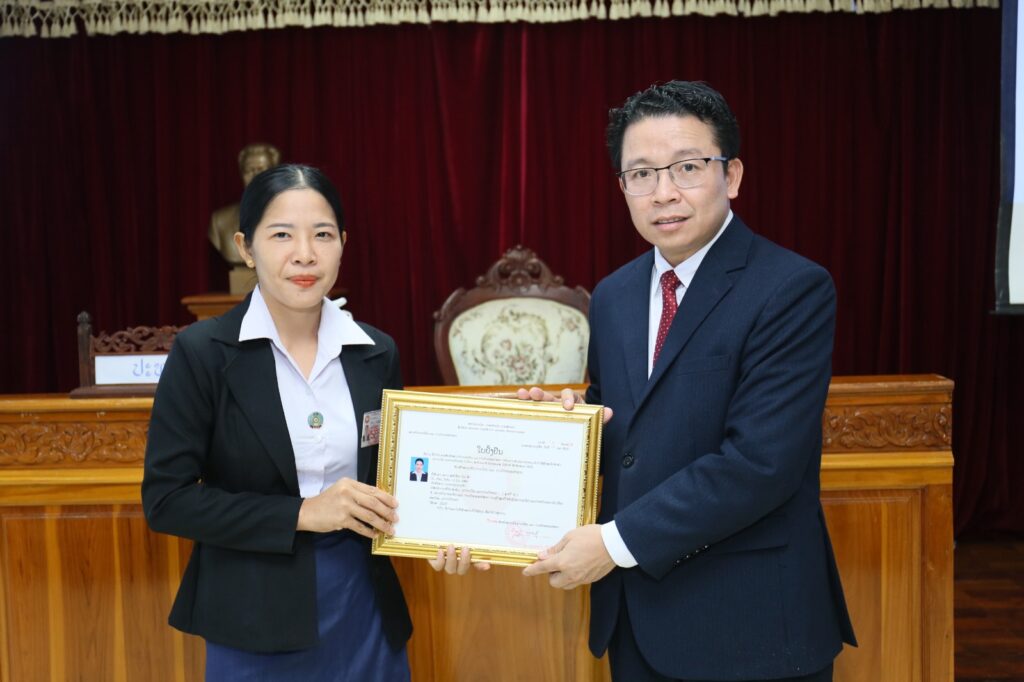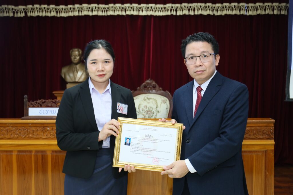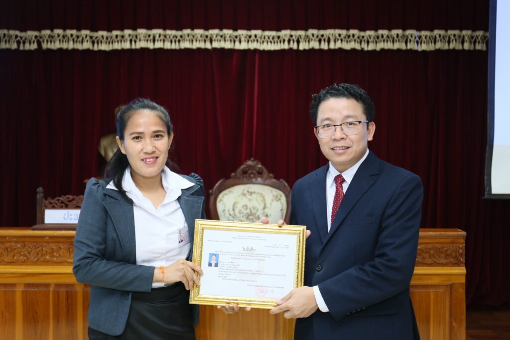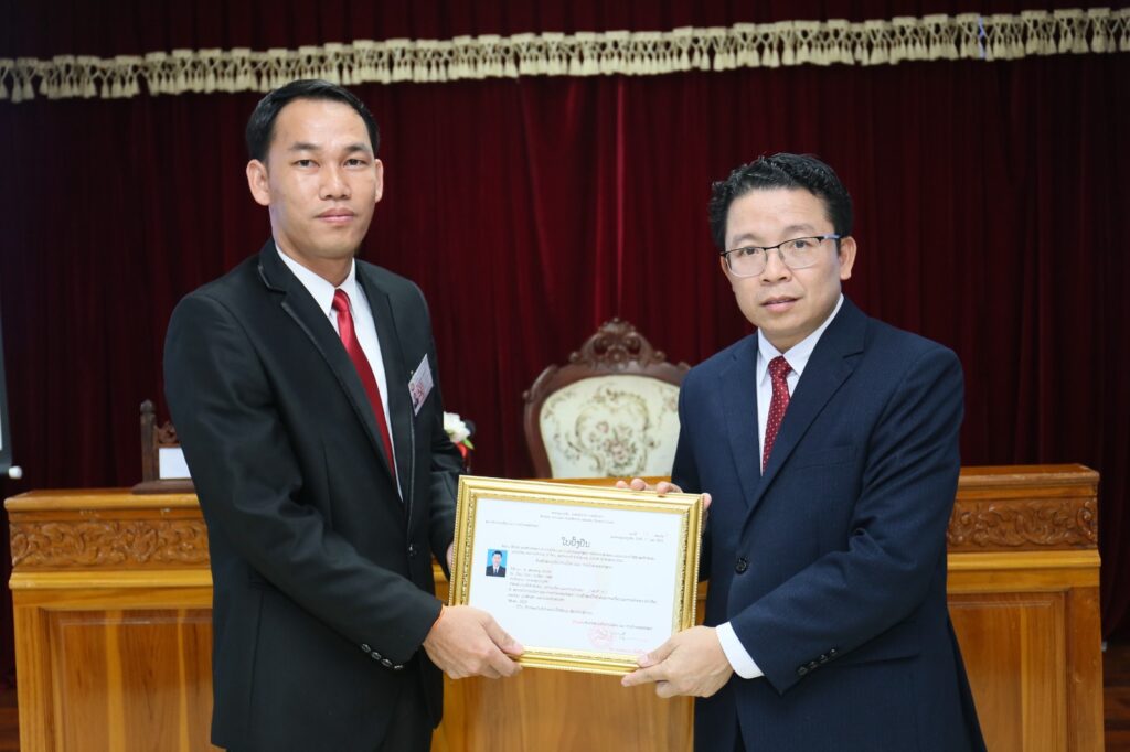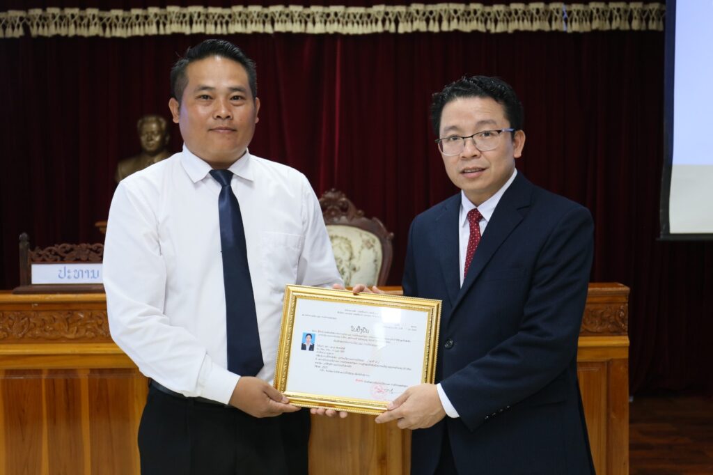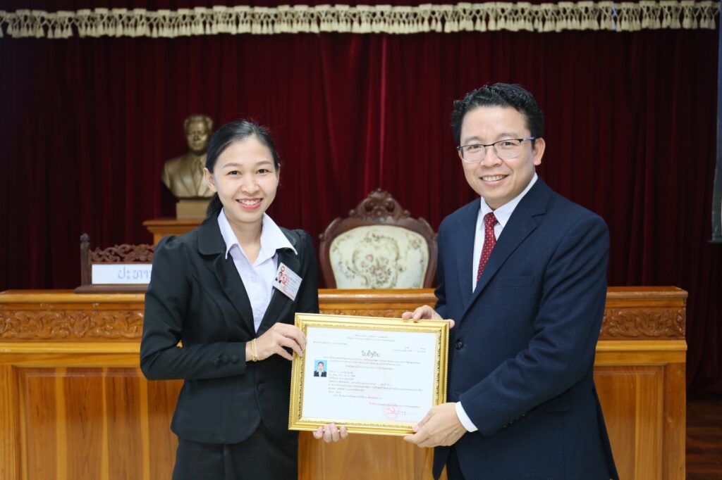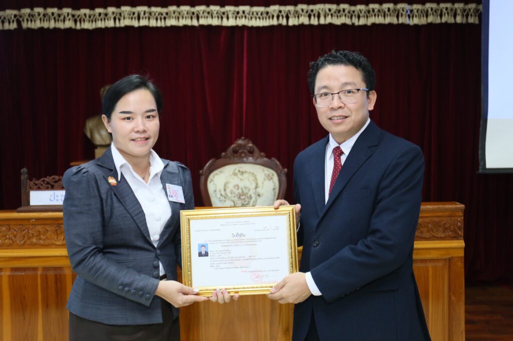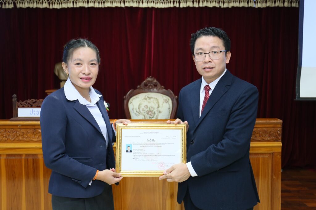 ເພື່ອເປັນການສະແດງເຖິງຜົນສຳເລັດ ຂອງການຝຶກອົບຮົມເປັນເວລາ 3 ເດືອນ ປະທານພິທີໄດ້ເປັນ ກຽດມອບໃບຢັ້ງຢືນການຝຶກອົບຮົມໃຫ້ສຳມະນາກອນ ແລະໄດ້ໂອ້ລົມ ສະແດງຄວາມຊົມເຊີຍເຖິງການນຳພາຊີ້ນຳຂອງຄະນະບໍລິຫານງານພັກ, ຄະນະອຳນວຍການ ສມປຊ ທີ່ບໍ່ໄດ້ລົດລະ ໃນການຕິດຕາມ, ກວດກາ ຢ່າງໃກ້ສິດ ແລະເປັນປະຈຳ; ພ້ອມກັນນັ້ນ, ທ່ານປະທານ ກໍໄດ້ເນັ້ນໜັກວ່າ: ການຈັດຕັ້ງປະຕິບັດຫຼັກສູດໃນຄັ້ງນີ້ ໃຫ້ບັນດາສະຫາຍໝູນໃຊ້ທິດສະດີ ແລະພຶດຕິກຳ ທີ່ໄດ້ຮ່ຳຮຽນເອົາຢູ່ໃນຊຸດຝຶກອົບຮົມຄັ້ງນີ້ ໄປຜັນຂະຫຍາຍເນື້ອໃນຈິດໃຈຂອງມະຕິດັ່ງກ່າວ ເຂົ້າສູ່ພຶດຕິກຳຕົວຈິງຢ່າງຕັ້ງໜ້າ ຢູ່ກົມກອງຂອງຕົນ. ຜົນສຳເລັດໃນການຝຶກອົບຮົມຄັ້ງນີ້ ໄດ້ກາຍເປັນການປະກອບສ່ວນອັນສຳຄັນເຂົ້າໃນວຽກງານກໍ່ສ້າງພະນັກງານສືບທອດ ແລະເປັນການເພີ່ມທະວີຄວາມສາມາດໃຫ້ແກ່ບັນດາຄູ-ອາຈານ ໃນການສິດສອນ, ໂດຍມີພື້ນຖານທາງດ້ານແນວຄິດທິດສະດີອັນໜັກແໜ້ນ ເພື່ອກ້າວໄປສູ່ການປະຕິບັດເປົ້າໝາຍການເມືອງ ຂອງພັກ-ລັດ ໃຫ້ມີຜົນສຳເລັດສູງສຸດ.