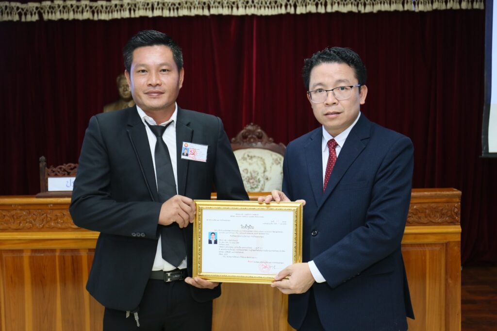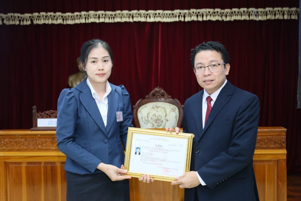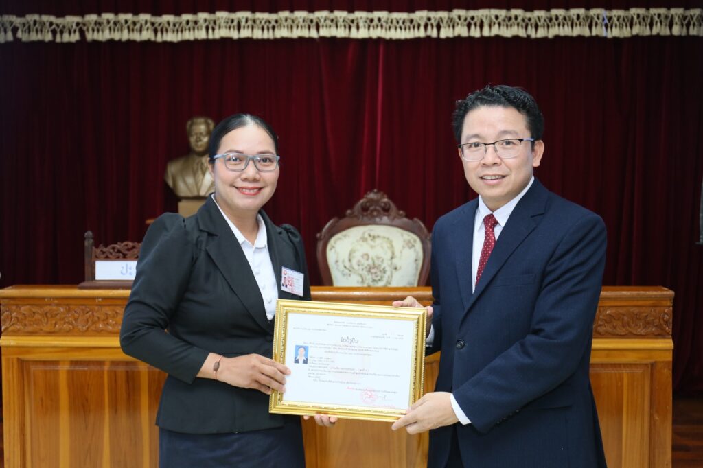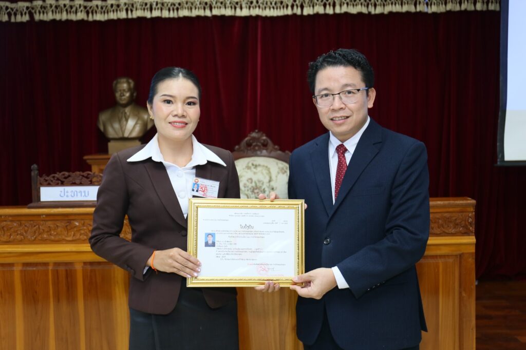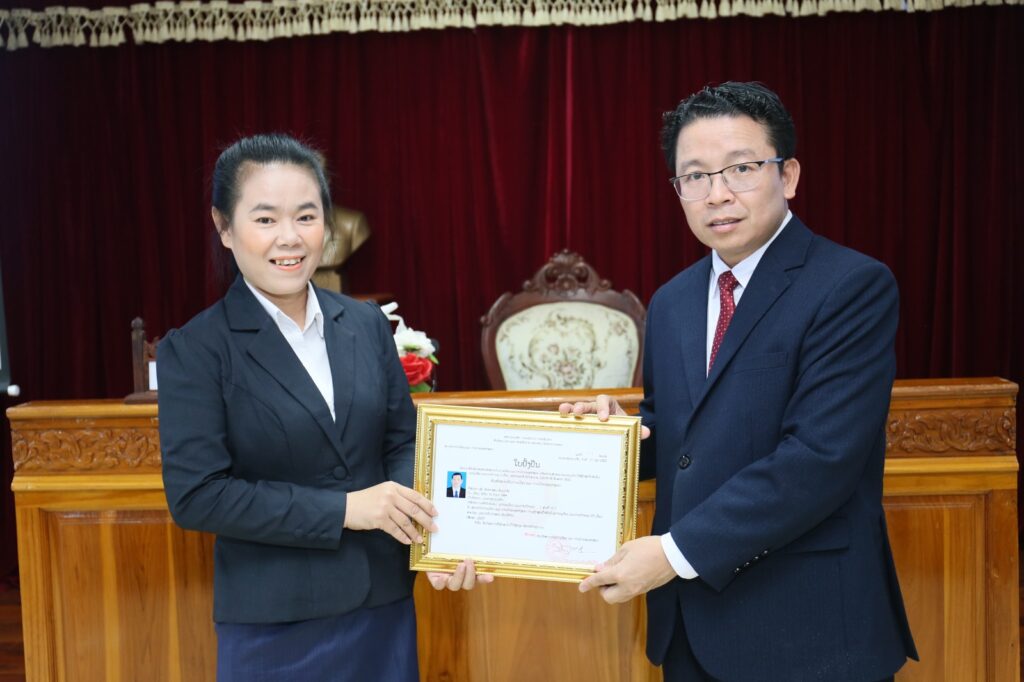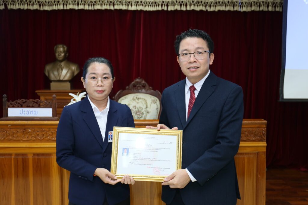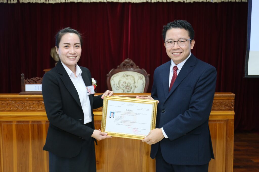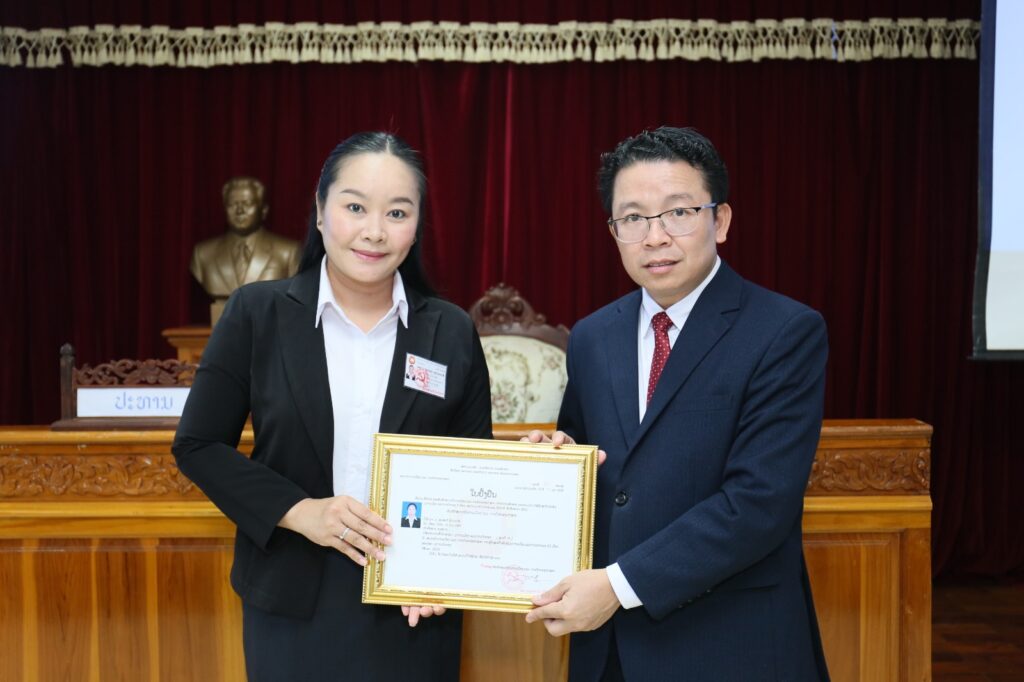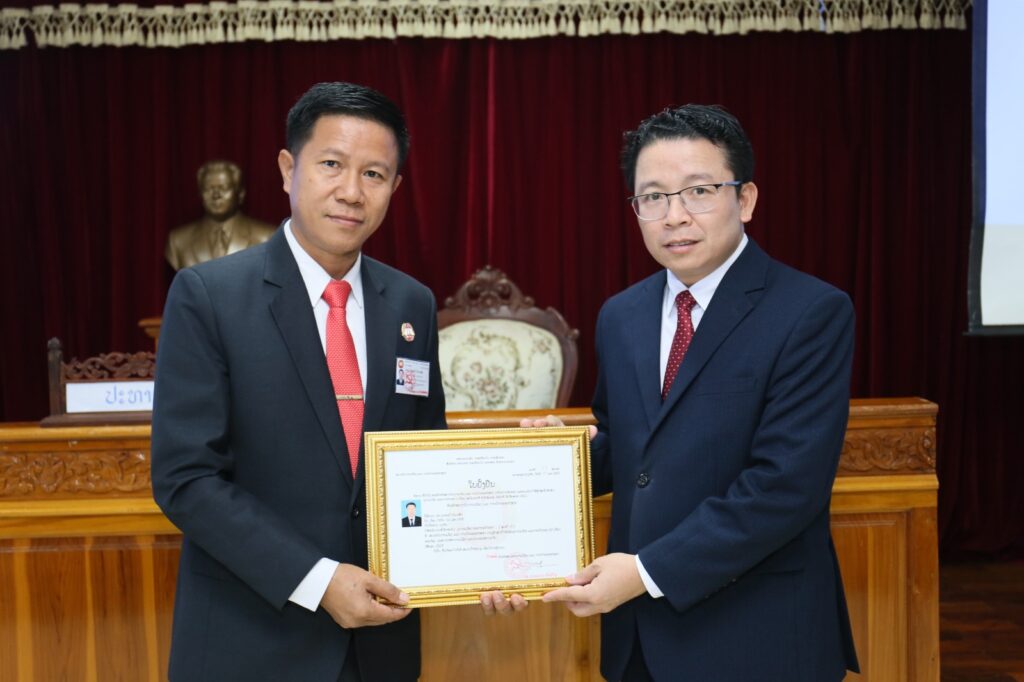 ເພື່ອເປັນການສະແດງເຖິງຜົນສຳເລັດ ຂອງການຝຶກອົບຮົມເປັນເວລາ 3 ເດືອນ ປະທານພິທີໄດ້ເປັນ ກຽດມອບໃບຢັ້ງຢືນການຝຶກອົບຮົມໃຫ້ສຳມະນາກອນ ແລະໄດ້ໂອ້ລົມ ສະແດງຄວາມຊົມເຊີຍເຖິງການນຳພາຊີ້ນຳຂອງຄະນະບໍລິຫານງານພັກ, ຄະນະອຳນວຍການ ສມປຊ ທີ່ບໍ່ໄດ້ລົດລະ ໃນການຕິດຕາມ, ກວດກາ ຢ່າງໃກ້ສິດ ແລະເປັນປະຈຳ; ພ້ອມກັນນັ້ນ, ທ່ານປະທານ ກໍໄດ້ເນັ້ນໜັກວ່າ: ການຈັດຕັ້ງປະຕິບັດຫຼັກສູດໃນຄັ້ງນີ້ ໃຫ້ບັນດາສະຫາຍໝູນໃຊ້ທິດສະດີ ແລະພຶດຕິກຳ ທີ່ໄດ້ຮ່ຳຮຽນເອົາຢູ່ໃນຊຸດຝຶກອົບຮົມຄັ້ງນີ້ ໄປຜັນຂະຫຍາຍເນື້ອໃນຈິດໃຈຂອງມະຕິດັ່ງກ່າວ ເຂົ້າສູ່ພຶດຕິກຳຕົວຈິງຢ່າງຕັ້ງໜ້າ ຢູ່ກົມກອງຂອງຕົນ. ຜົນສຳເລັດໃນການຝຶກອົບຮົມຄັ້ງນີ້ ໄດ້ກາຍເປັນການປະກອບສ່ວນອັນສຳຄັນເຂົ້າໃນວຽກງານກໍ່ສ້າງພະນັກງານສືບທອດ ແລະເປັນການເພີ່ມທະວີຄວາມສາມາດໃຫ້ແກ່ບັນດາຄູ-ອາຈານ ໃນການສິດສອນ, ໂດຍມີພື້ນຖານທາງດ້ານແນວຄິດທິດສະດີອັນໜັກແໜ້ນ ເພື່ອກ້າວໄປສູ່ການປະຕິບັດເປົ້າໝາຍການເມືອງ ຂອງພັກ-ລັດ ໃຫ້ມີຜົນສຳເລັດສູງສຸດ.