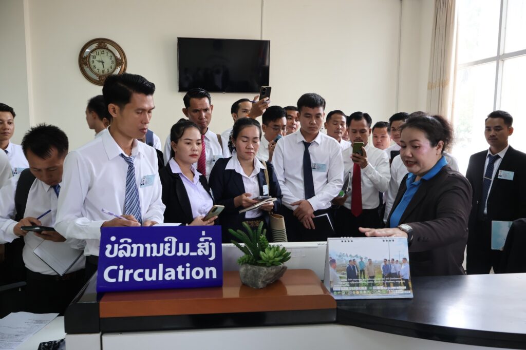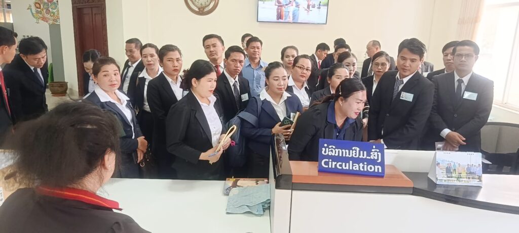ຫຼັງຈາກນັກສຶກສາທີ່ສຳເລັດການຮຽນວິຊາບໍລິຫານລະບົບຂໍ້ມູນຂ່າວສານ ເພື່ອໃຫ້ຕິດພັນກັບພາກຕົວຈິງ ເພື່ອຕອບສະໜອງຄວາມຕ້ອງການໃນການຮຽນຮູ້ທິດສະດີກັບພຶດຕິກຳ, ສະນັ້ນ ໃນວັນທີ 4 ແລະວັນທີ 12 ພະຈິກ 2025 ສູນຂໍ້ມູນຂ່າວສານ ນຳໂດຍ ທ່ານ ປທ ວຽງສະຫວັນ ຈັນທະວິໄຊ, ຫົວໜ້າພະແນກຄົ້ນຄວ້າວິໄຈຂ່າວ ແລະ ທ່ານ ປທ ນ. ພາວັນ ວິລະວົງ, ຫົວໜ້າພະແນກຫໍສະໝຸດ ໄດ້ນຳພາຄະນະນັກສຶກສາທິດສະດີການເມືອງ ລະບົບປະລິຍາຕີເຊື່ອມຕໍ່ ຮຸ່ນທີ XV ຈໍານວນ 30 ທ່ານ, ຍິງ 12 ທ່ານ ແລະ ລະບົບປະລິນຍາຕີກໍ່ສ້າງ ຮຸ່ນທີ XXVI ຈໍານວນ 50 ທ່ານ, ຍິງ 6 ທ່ານ. ລົງເຄື່ອນໄຫວທັດສະນະສຶກສາ ທີ່ຫໍສະໝຸດແຫ່ງຊາດ ແລະ ສູນອິນເຕີເນັດແຫ່ງຊາດ. ຢູ່ທີ່ຫໍສະໝຸດແຫ່ງຊາດ, ຄະນະນັກສຶກສາໄດ້ຮັບຟັງການຕ້ອນຮັບອັນອົບອຸ່ນຈາກ ທ່ານ ວົງສອນ ລຸນຍະເດດ ຮອງຫົວໜ້າຂະແໜງ ມູນເຊື້ອ ແລະໜັງສືຫາຍາກ ແລະ ທ່ານ ນ. ສຸຈິນດາ ດວງມະນີ, ຮອງຫົວໜ້າຂະແໜງການອ່ານ, ຫໍສະໝຸດແຫ່ງຊາດ, ພ້ອມດ້ວຍຄະນະ, ພ້ອມທັງໄດ້ສຶກສາຮຽນຮູ້ກ່ຽວກັບການຈັດການ, ການອະນຸລັກເອກະສານ ແລະ ການບໍລິຫານລະ ບົບຂໍ້ມູນຂ່າວສານທີ່ທັນສະໄໝ. ການເຄື່ອນໄຫວຄັ້ງນີ້ ແມ່ນມີຄວາມໝາຍສຳຄັນໃນການປູກຈິດສຳນຶກໃຫ້ນັກສຶກສາເຫັນຄຸນຄ່າ ຂອງການຄຸ້ມຄອງບໍລິຫານລະບົບຂໍ້ມູນຂ່າວສານ ເຊິ່ງເປັນພື້ນຖານອັນໜັກແໜ້ນ ຂອງການຄົ້ນຄວ້າວິທະຍາສາດ ແລະ ການພັດທະນາປະເທດຊາດ.