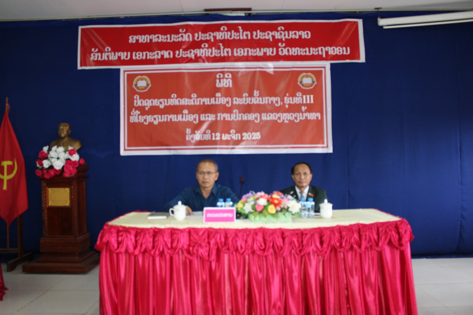 ໃນຕອນເຊົ້າຂອງວັນພຸດ, ວັນທີ 12 ພະຈິກ 2025 ນີ້ຢູ່ທີ່ຫ້ອງປະຊຸມໂຮງຮຽນທິດສະດີການເມືອງ-ການປົກຄອງ ແຂວງຫຼວງນໍ້າທາ ໄດ້ປີດຊຸດຮຽນທິດສະດີການເມືອງ ລະບົບຂັ້ນກາງ ຮຸ່ນທີ III ໂດຍການເປັນປະທານ ຂອງ ທ່ານ ຄຳສີ ດັງສະໄຫວ ກຳມະການພັກແຂວງ, ຫົວໜ້າໂຮງຮຽນການເມືອງ ແລະ ການປົກຄອງ ແຂວງຫຼວງນໍ້າທາ, ເປັນກຽດເຂົ້າຮ່ວມ ຂອງ ທ່ານ ອ່ອນຈັນ ຄຳພາວົງ ຮອງເລຂາພັກແຂວງ ຮັບຜິດຊອບຊີ້ນຳຂົງເຂດວຽກງານການເມືອງ-ແນວຄິດ, ວຽກງານພັກ-ພະນັກງານ, ມີພາກສ່ວນທີ່ກ່ຽວຂ້ອງຂອງແຂວງ, ຄູອາຈານ, ຕະຫຼອດຮອດນັກສຶກສາເຂົ້າຮ່ວມ.