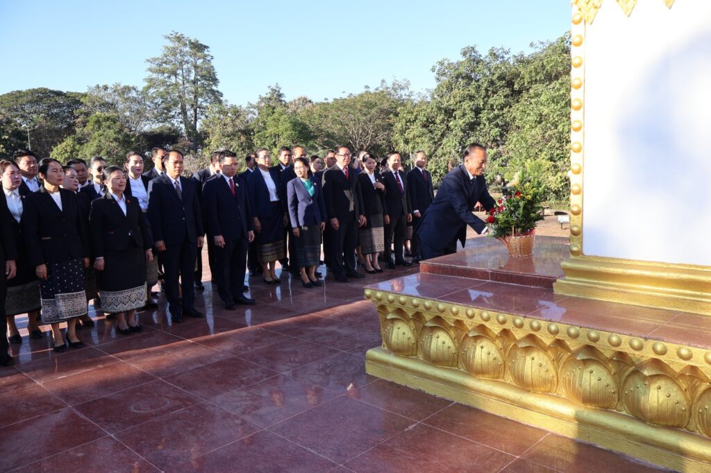ສະນັ້ນ, ໃນຕອນເຊົ້າຂອງ ວັນທີ 1 ທັນວາ 2025, ຄະນະພັກ-ຄະນະນຳ, ພະນັກງານ, ຄູ-ອາຈານ ຂອງສະຖາບັນການເມືອງ ແລະ ການປົກຄອງແຫ່ງຊາດ ເຊິ່ງນຳໂດຍ: ສະຫາຍ ຮສ ພູວົງ ອຸ່ນຄຳແສນ ກຳມະການສູນກາງພັກ, ເລຂາຄະນະບໍລິຫານງານພັກ, ຫົວໜ້າສະຖາບັນການເມືອງ ແລະ ການປົກຄອງແຫ່ງຊາດ ໄດ້ນຳເອົາກະຕ່າດອກໄມ້ອັນສົ່ງກິ່ນຫອມຫວນ ແລະ ສວຍສົດງົດງາມ ມາວາງຕໍ່ໜ້າຮູບປັ້ນຫຼໍ່ ຂອງປະທານ ໄກສອນ ພົມວິຫານ ທີ່ສະຖາບັນການເມືອງ ແລະ ການປົກຄອງແຫ່ງຊາດ. ການວາງກະຕ່າດອກໄມ້ໃນຄັ້ງນີ້, ແມ່ນເນື່ອງໃນໂອກາດ ວັນສະຖາປະນາ ສາທາລະນະລັດ ປະຊາທິປະໄຕ ປະຊາຊົນລາວ ຄົບຮອບ 50 ປີ (2.12.1975 – 2.12.2025) ເພື່ອສະແດງເຖິງຄວາມເຄົາລົບຮັກ, ຄວາມກະຕັນຍູຮູ້ບຸນຄຸນ ແລະ ລະນຶກເຖິງຄຸນງາມຄວາມດີ ຂອງ ປະທານ ໄກສອນ ພົມວິຫານ ຜູ້ນຳທີ່ແສນເຄົາລົບຮັກ ຂອງປວງຊົນລາວທັງຊາດ. ຕະຫຼອດຊີວິດ ຂອງປະທານ ໄກສອນ ພົມວິຫານ ໄດ້ອຸທິດສະຕິປັນຍາ ແລະ ກຳລັງວັງຊາ ໃຫ້ແກ່ພາລະກິດປົດປ່ອຍຊາດ ກໍຄືພາລະກິດປົກປັກຮັກສາ ແລະ ສ້າງສາພັດທະນາປະເທດຊາດ, ນຳພາການປະຕິວັດ ຂອງປະຊາຊົນລາວເຮົາ ຈາກໄຊຊະນະນີ້ ກ້າວຂຶ້ນສູ່ໄຊຊະນະໃໝ່ທີ່ຍິ່ງໃຫຍ່ກວ່າເກົ່າ. ໂດຍສະເພາະແມ່ນ ໄຊຊະນະອັນຍິ່ງໃຫຍ່ ໃນວັນທີ 2 ທັນວາ 1975 ເຊິ່ງເປັນໝາກຜົນແຫ່ງການຕໍ່ສູ້ອັນພິລະອາດຫານ ພາຍໃຕ້ການນໍາພາຂອງພັກ ແລະ ປະທານ ໄກສອນ ພົມວິຫານ, ເຮັດໃຫ້ປະເທດຊາດຂອງພວກເຮົາ ຈາກປະເທດທີ່ຕົກເປັນເມືອງຂຶ້ນຂອງຈັກກະພັດຕ່າງດ້າວ ໄດ້ກາຍມາເປັນປະເທດທີ່ມີເອກະລາດ, ມີອະທິປະໄຕ ແລະ ມີຖານະອັນສົມກຽດໃນເວທີສາກົນ ມາຈົນເຖິງທຸກວັນນີ້ ຄົບຮອບ 50 ປີ.