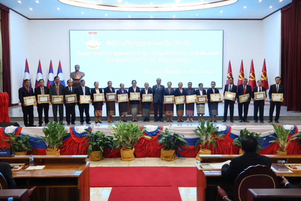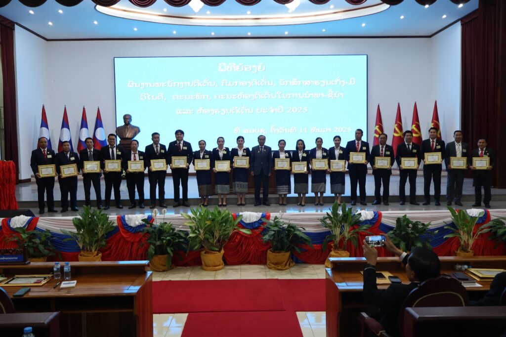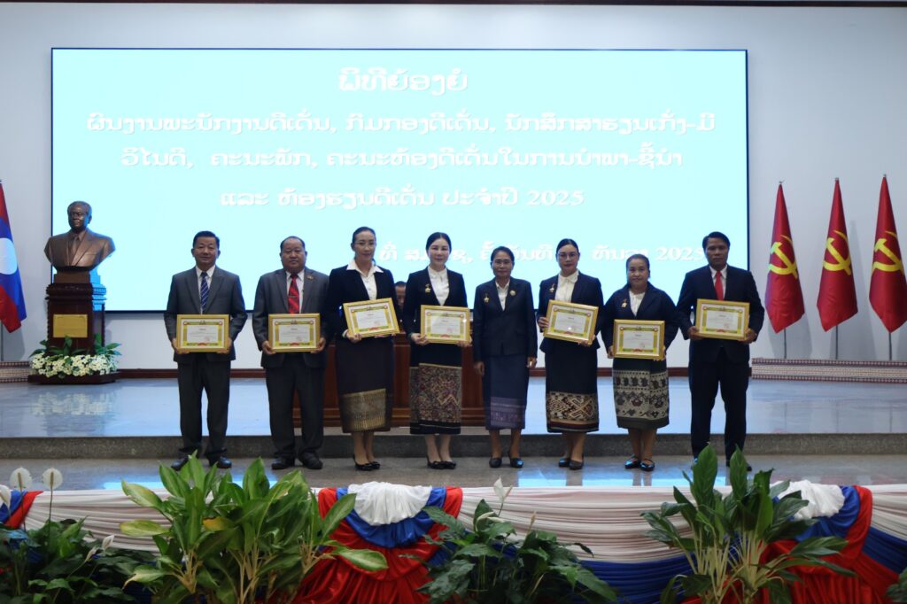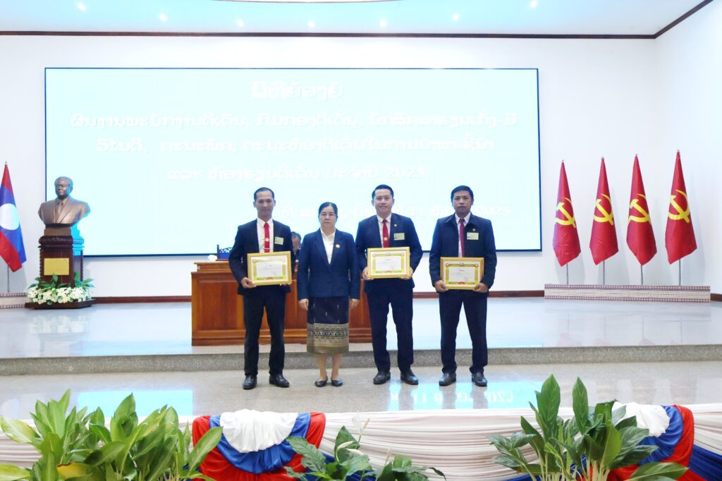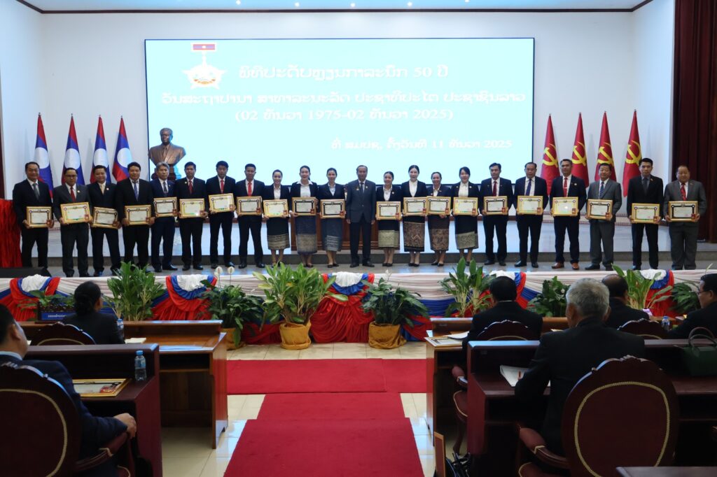 ຈາກຜົນງານອັນດີເດັ່ນດັ່ງກ່າວ, ໃນພິທີໄດ້ມີການຍ້ອງຍໍ ແລະ ມອບຫຼຽນກາລະນຶກ 50 ປີ ວັນສະຖາປະນາ ສປປ ລາວ ມີຈຳນວນ 143 ທ່ານ, ຍິງ 60 ທ່ານ ແລະ ຍ້ອງຍໍຍ້ອງຍໍພະນັກງານດີເດັ່ນ ປະຈໍາປີ 2025 ລາຍລະ ອຽດມີດັ່ງນີ້: