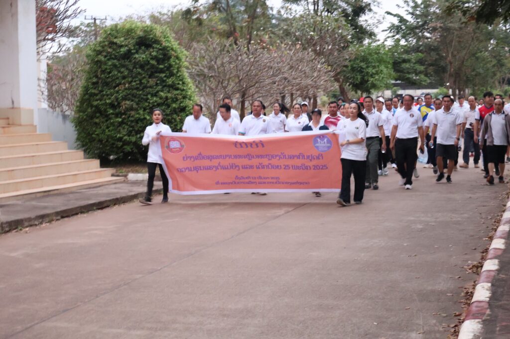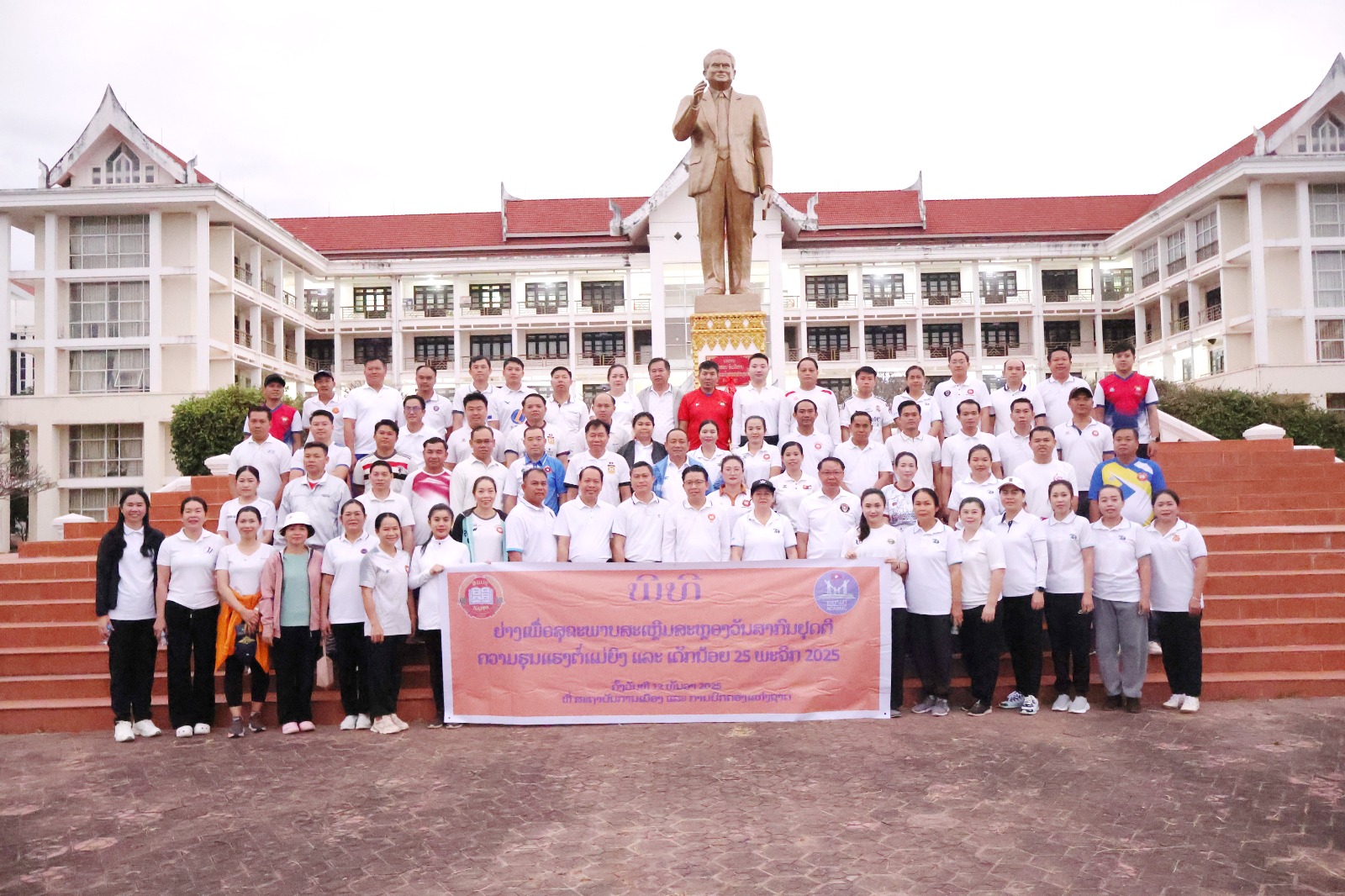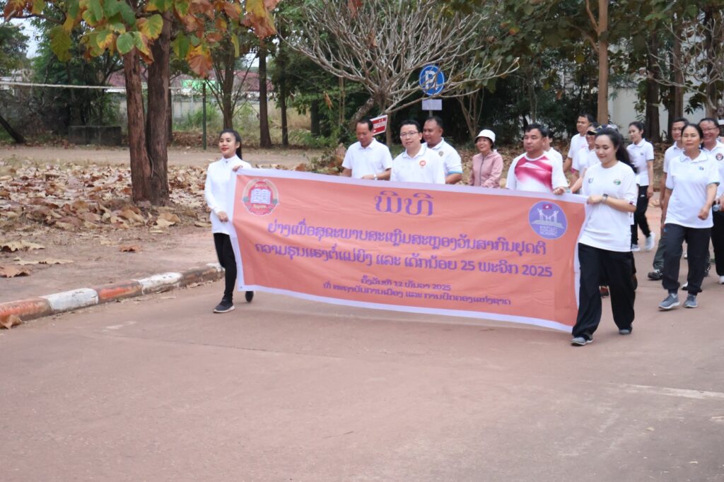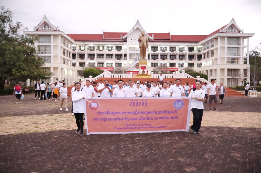ໃນຕອນເຊົ້າ ຂອງວັນທີ 12 ທັນວາ 2025 ເວລາ 06:00 ໂມງ, ທີ່ສະຖາບັນການເມືອ ແລະ ການປົກຄອງ ແຫ່ງຊາດ ໄດ້ຈັດສະເຫຼີມສະຫຼອງວັນສາກົນຢຸດຕິຄວາມຮຸນແຮງຕໍ່ແມ່ຍິງ ແລະເດັກນ້ອຍ 25 ພະຈິກ, ເຊິ່ງເປັນການເຄື່ອນໄຫວຕາມແນວທາງນະໂຍບາຍ ຂອງພັກ ແລະ ລັດ ທີ່ໃຫ້ຄວາມສຳຄັນຕໍ່ການສົ່ງເສີມຄວາມສະເໝີພາບ ແລະ ປົກປ້ອງສິດຜົນປະໂຫຍດຂອງແມ່ຍິງ ແລະ ເດັກນ້ອຍ.
