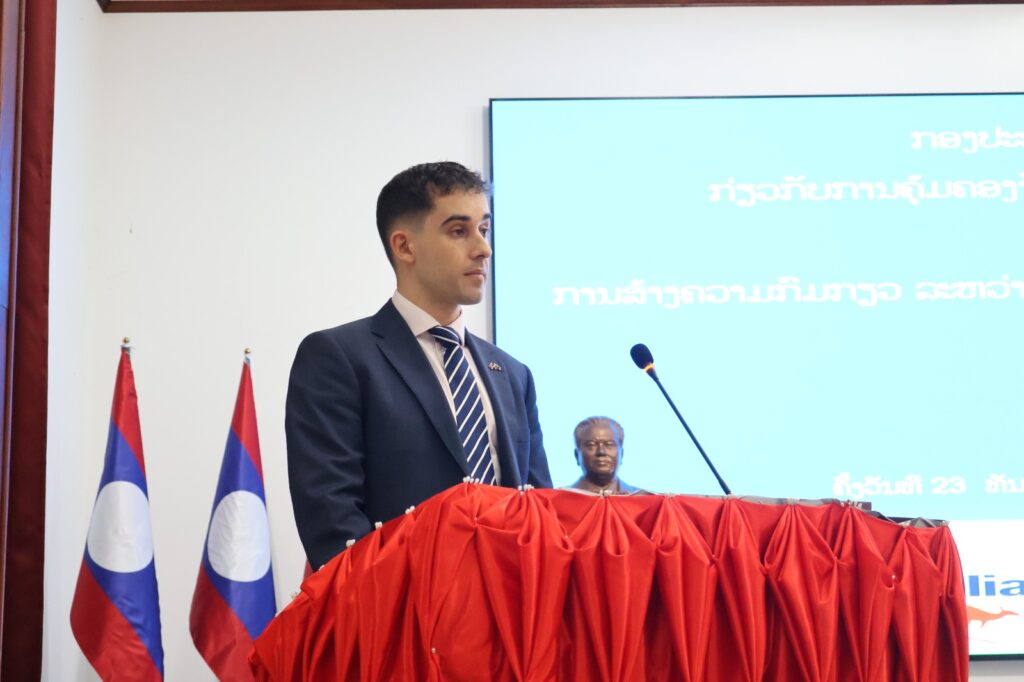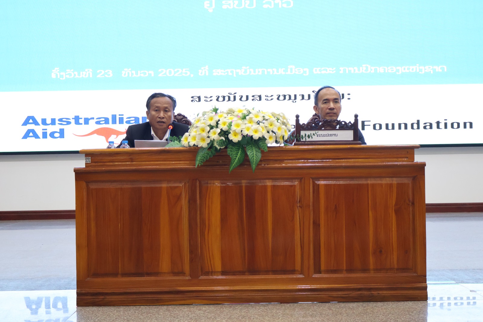 ໃນຕອນເຊົ້າວັນທີ 23 ທັນວາ 2025 ຢູ່ທີ່ສະໂມສອນໃຫຍ່ ຂອງສະຖາບັນການເມືອງ ແລະ ການປົກຄອງແຫ່ງຊາດ (ສມປຊ) ໄດ້ມີການຈັດກອງປະຊຸມເຜີຍແຜ່ການຄົ້ນຄວ້າວິທະຍາສາດ ພາຍໃຕ້ຫົວຂໍ້: “ການຄຸ້ມຄອງຈັດສັນທີ່ດິນໃຫ້ປະຊາຊົນ ເພື່ອແກ້ໄຂຄວາມທຸກຍາກ” ແລະ “ຄວາມກົມກຽວລະຫວ່າງການພັດທະນາພະລັງງານເຂື່ອນໄຟຟ້າ ຕິດພັນກັບການພັດທະນາທ່ອງທ່ຽວ”. ກອງປະຊຸມຄັ້ງນີ້ ດຳເນີນພາຍໃຕ້ການເປັນປະທານຮ່ວມຂອງ ທ່ານ ຮສ ພູວົງ ອຸ່ນຄຳແສນ, ກຳມະການສູນກາງພັກ, ເລຂາຄະນະບໍລິຫານງານພັກ, ຫົວໜ້າສະຖາບັນການເມືອງ ແລະ ການປົກຄອງແຫ່ງຊາດ ແລະ ທ່ານ ປອ ບຸນທັນ ບຸນວິໄລ ຮອງເລຂາທິການສະພາແຫ່ງຊາດ, ມີບັນດາທ່ານຜູ້ຕາງໜ້າຈາກສະຖານທູດອົດສະຕຣາລີ, ມູນນິທິເອເຊຍ, ບັນດາການນຳຈາກກະຊວງ, ອົງການຈັດຕັ້ງສາກົນ, ນັກຄົ້ນຄວ້າ ແລະ ນັກສຶກສາ ເຂົ້າຮ່ວມຢ່າງພ້ອມພຽງ ກວ່າ 280 ທ່ານ.