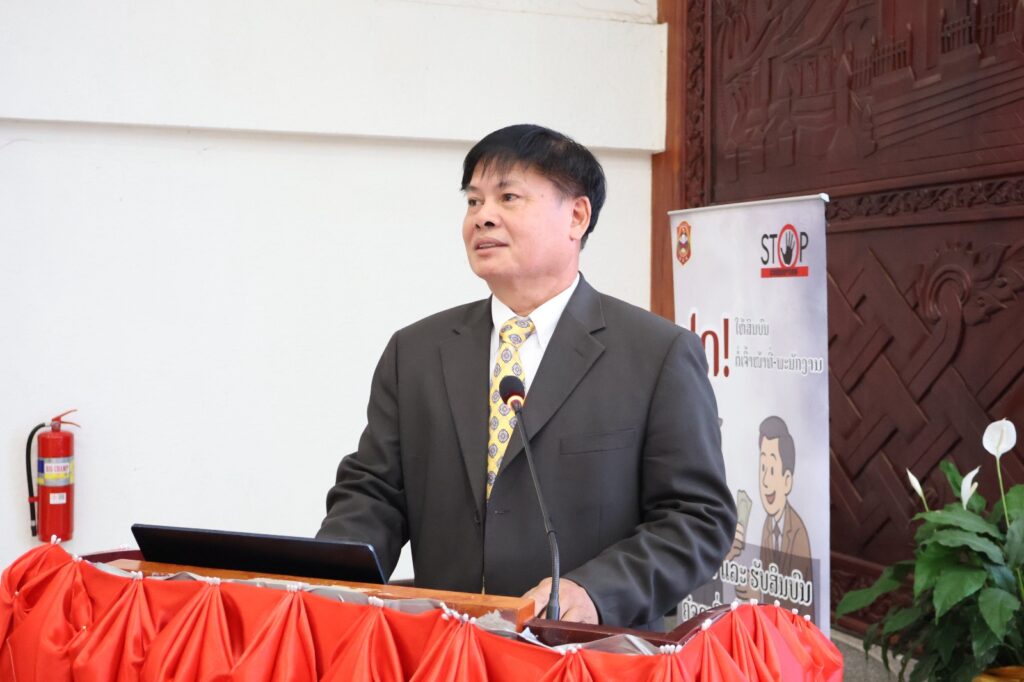 ໃນວາລະໂອກາດທີ່ມີຄວາມໝາຍສຳຄັນນີ້, ທ່ານ ຮສ ພູວົງ ອຸ່ນຄຳແສນ ໄດ້ກ່າວເປີດພິທີ ແລະ ມີຄຳເຫັນເຈາະຈີ້ມທີ່ເລິກເຊິ່ງ ໂດຍຍົກໃຫ້ເຫັນວ່າ: ການສໍ້ລາດບັງຫຼວງບໍ່ແມ່ນພຽງແຕ່ການກະທຳຜິດທາງກົດໝາຍທົ່ວໄປ, ແຕ່ມັນແມ່ນໄພອັນຕະລາຍຮ້າຍແຮງທີ່ກົດໜ່ວງຖ່ວງດຶງການພັດທະນາເສດຖະກິດ-ສັງຄົມ, ສ້າງຄວາມເສຍຫາຍຕໍ່ຊັບສິນຂອງລັດ ແລະ ທີ່ສຳຄັນທີ່ສຸດແມ່ນ “ມັນບັ່ນທອນຄວາມເຊື່ອໝັ້ນຂອງປະຊາຊົນທີ່ມີຕໍ່ການນຳພາຂອງພັກ ແລະ ການຄຸ້ມຄອງຂອງລັດ, ທຳລາຍສະຖຽນລະພາບທາງການເມືອງ ແລະ ຄວາມຍຸຕິທຳໃນສັງຄົມ”.
