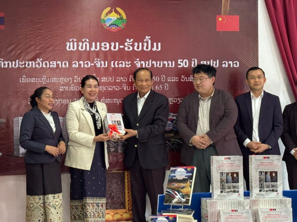 ໃນທ່າມກາງບັນຍາກາດທີ່ທົ່ວພັກ, ທົ່ວລັດ ແລະທົ່ວປວງຊົນລາວທັງຊາດພວມເບີກບານມ່ວນຊື່ນສະເຫຼີມສະ ຫຼອງວັນສະຖາປະນາ ສາທາລະນະລັດ ປະຊາທິປະໄຕ ປະຊາຊົນລາວ ຄົບຮອບ 50 ປີ ແລະກະກຽມສະເຫຼີມ ສະຫຼອງວັນສ້າງຕັ້ງສາຍພົວພັນການທູດ ລາວ-ຈີນ ຄົບຮອບ 65 ປີ ຢ່າງມີຄວາມໝາຍຄວາມສໍາຄັນນັ້ນ; ໃນວັນທີ 9 ມັງກອນ 20 26, ທີ່ຫໍສະໝຸດກອງທັບ, ນະຄອນຫຼວງວຽງຈັນ, ໄດ້ມີພິທີມອບ-ຮັບປຶ້ມບັນທຶກປະຫວັດສາດ ແລະປຶ້ມການເມືອງ ແນວຄິດອັນລຳ້ຄ່າ ເພື່ອແນໃສ່ການສ້າງພື້ນຖານຄວາມຮູ້ດ້ານປະຫວັດສາດ ແລະການເມືອງໃຫ້ແກ່ສັງຄົມ.