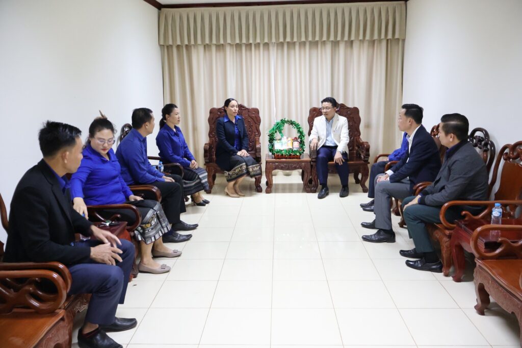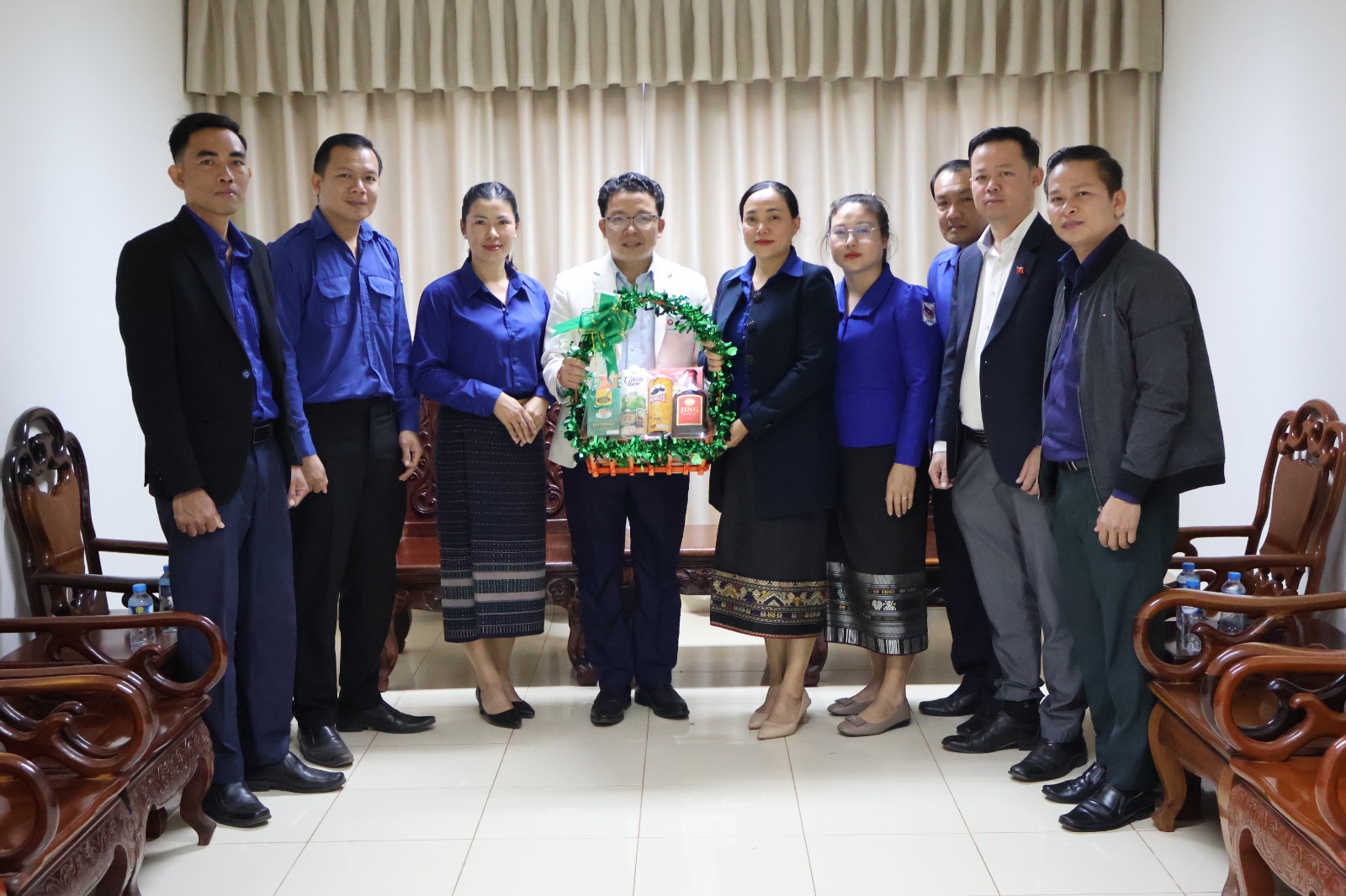 ໃຫ້ກຽດນຳພາຄະນະເຂົ້າອວຍພອນໃນຄັ້ງນີ້ໂດຍ ທ່ານ ປອ ນາງ ດາວອນ ບຸດທະນຸວົງ, ເລຂາຄະນະບໍລິຫານງານຊາວໜຸ່ມ ສມປຊ, ພ້ອມດ້ວຍຄະນະບໍລິຫານງານຊາວໜຸ່ມ, ຕາງໜ້າຊາວໜຸ່ມຮາກຖານ, ພະນັກງານ, ຄູ-ອາຈານ ແລະ ນັກສຶກສາເຂົ້າຮ່ວມຢ່າງພ້ອມພຽງ.