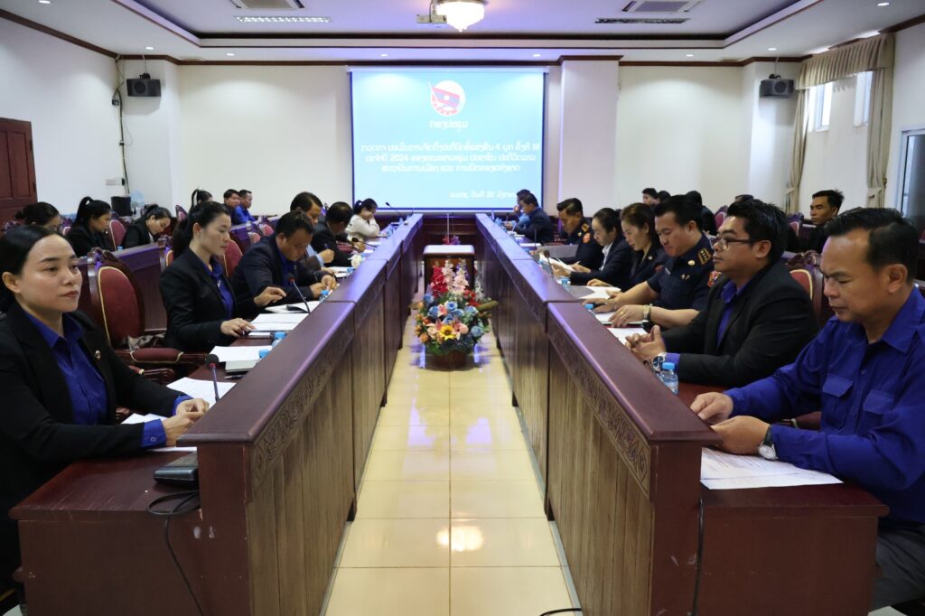 ກອງປະຊຸມຄັ້ງນີ້ ດຳເນີນພາຍໃຕ້ການເປັນປະທານຂອງ ສະຫາຍ ສຸລິຍາ ແກ້ວພິລາວົງ ຮອງເລຂາຄະນະບໍລິຫານງານສູນກາງຊາວໜຸ່ມປະຊາຊົນປະຕິວັດລາວ, ປະທານກວດກາ ສຊປລ, ຫົວໜ້າຄະນະກວດກາປະເມີນຜົນຂໍ້ແຂ່ງຂັນ 4 ບຸກ ແລະ ໃຫ້ກຽດເຂົ້າຮ່ວມໂດຍ ສະຫາຍ ປອ ນ. ດາວອນ ບຸດທະນຸວົງ, ເລຂາຄະນະບໍລິຫານງານຊາວໜຸ່ມ ສມປຊ, ພ້ອມດ້ວຍຄະນະ, ຕາງໜ້າຈາກໜ່ວຍຮາກຖານ ແລະ ສະມາຊິກຊາວໜຸ່ມ ພະນັກງານ, ຄູ-ອາຈານ ແລະ ນັກສຶກສາ ເຂົ້າຮ່ວມຢ່າງພ້ອມພຽງ.