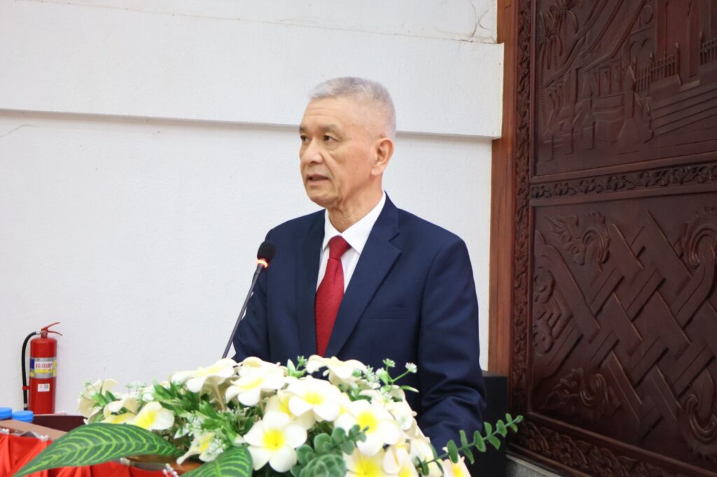 ພິທີດັ່ງກ່າວ ໄດ້ຈັດຂຶ້ນຢ່າງສົມກຽດ ໂດຍການໃຫ້ກຽດເຂົ້າຮ່ວມເປັນປະທານຂອງ ສະຫາຍ ພົນເອກ ວິໄລ ຫຼ້າຄຳຟອງ ກຳມະການກົມການເມືອງສູນກາງພັກ, ຜູ້ປະຈຳການເລຂາທິການສູນກາງພັກ, ຮອງນາຍົກລັດຖະມົນຕີ ແຫ່ງ ສປປ ລາວ, ມີຜູ້ຕາງໜ້າຈາກຄະນະຈັດຕັ້ງສູນກາງພັກ, ຫ້ອງວ່າການສູນກາງພັກ, ຄະນະໂຄສະນາອົບຮົມສູນກາງພັກ, ບັນດາສະຫາຍຄະນະບໍລິຫານງານພັກ, ຄະນະນຳ, ພະນັກງານຫຼັກແຫຼ່ງ, ຄູ-ອາຈານ ພ້ອມດ້ວຍນັກສຶກສາ, ນັກຄົ້ນຄວ້າ ພາຍໃນ ສມປຊ ເຂົ້າຮ່ວມຢ່າງພ້ອມພຽງ.