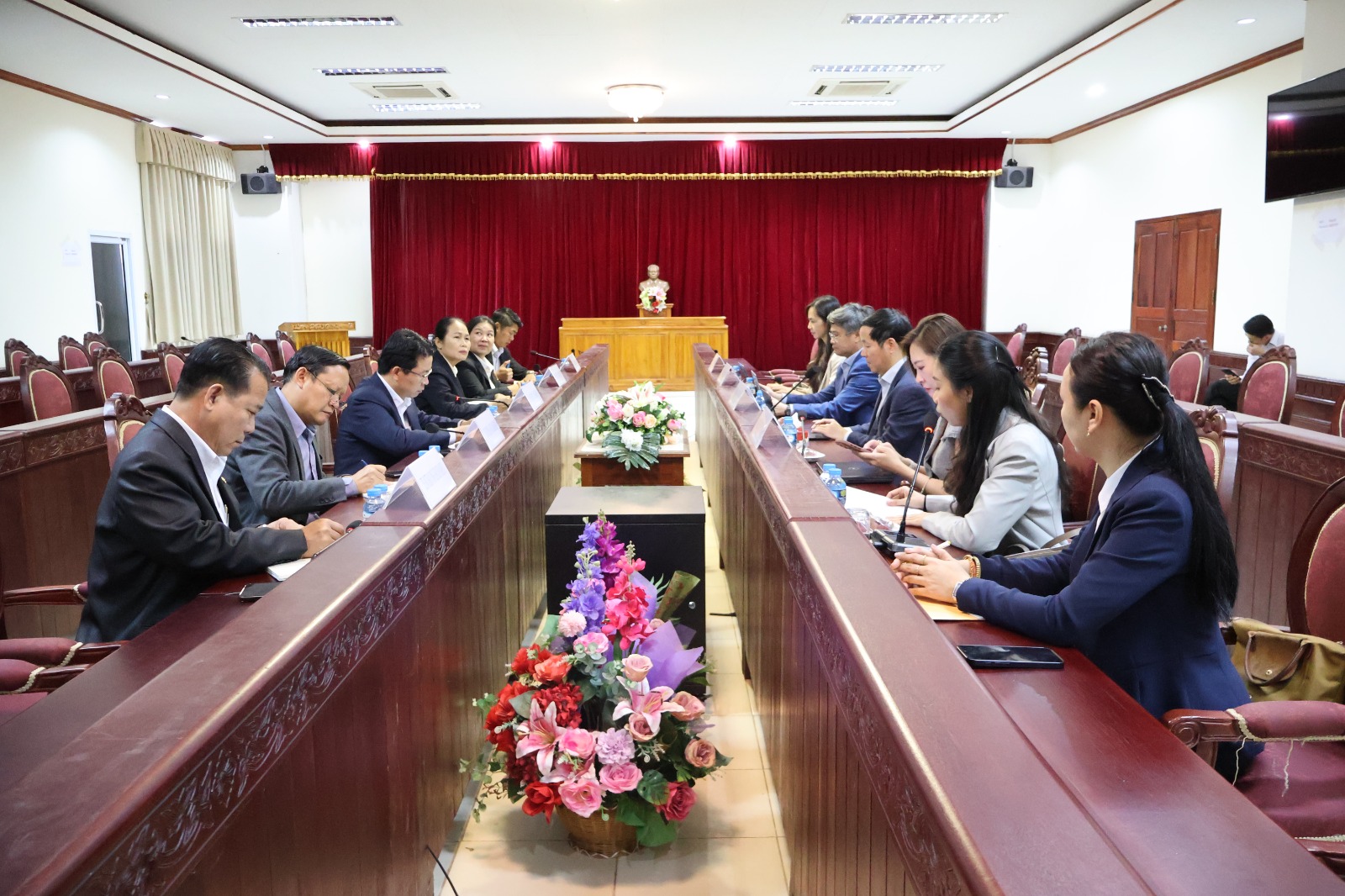 ໃນຕອນທ້າຍ ຂອງການພົບປະ, ທ່ານ ປອ. ວູ ແທ່ງ ຕູ ແອງ ໄດ້ສະແດງຄວາມຂອບໃຈຢ່າງຈິງໃຈ ຕໍ່ການຕ້ອນຮັບອັນອົບອຸ່ນ ແລະ ການໃຫ້ຂໍ້ມູນທີ່ເປັນປະໂຫຍດ ຂອງ ສມປຊ. ທ່ານຢືນຢັນວ່າ ຂໍ້ມູນທີ່ໄດ້ຮັບຈະເປັນພື້ນຖານສຳຄັນ ໃນການອອກແບບເນື້ອໃນການຝຶກອົບຮົມ ໃຫ້ແທດເໝາະກັບສະພາບຄວາມເປັນຈິງ ຂອງ ສປປ ລາວ ທ່ານ ຮສ ປອ ດາວສະຫວັນ ເຄືອມີໄຊ ໄດ້ກ່າວປິດທ້າຍໂດຍເນັ້ນໜັກວ່າ ການພົບປະຄັ້ງນີ້ ແມ່ນນິມິດໝາຍອັນດີງາມອີກບາດກ້າວໜຶ່ງ ໃນການເສີມຂະຫຍາຍສາຍພົວພັນມິດຕະພາບອັນຍິ່ງໃຫຍ່, ຄວາມສາມັກຄີພິເສດ ແລະ ການຮ່ວມມືຮອບດ້ານ ລະຫວ່າງ ລາວ-ຫວຽດນາມ ໃຫ້ແຕກດອກອອກຜົນຍິ່ງໆຂຶ້ນ, ໂດຍສະເພາະແມ່ນໃນຂົງເຂດການກໍ່ສ້າງ ແລະ ບຳລຸງສ້າງພະນັກງານ ໃຫ້ມີຄຸນທາດການເມືອງໜັກແໜ້ນ ແລະ ມີຄວາມສາມາດໃນການນຳພາປະເທດຊາດ ກ້າວຂຶ້ນສູ່ຄວາມວັດທະນະຖາວອນ.