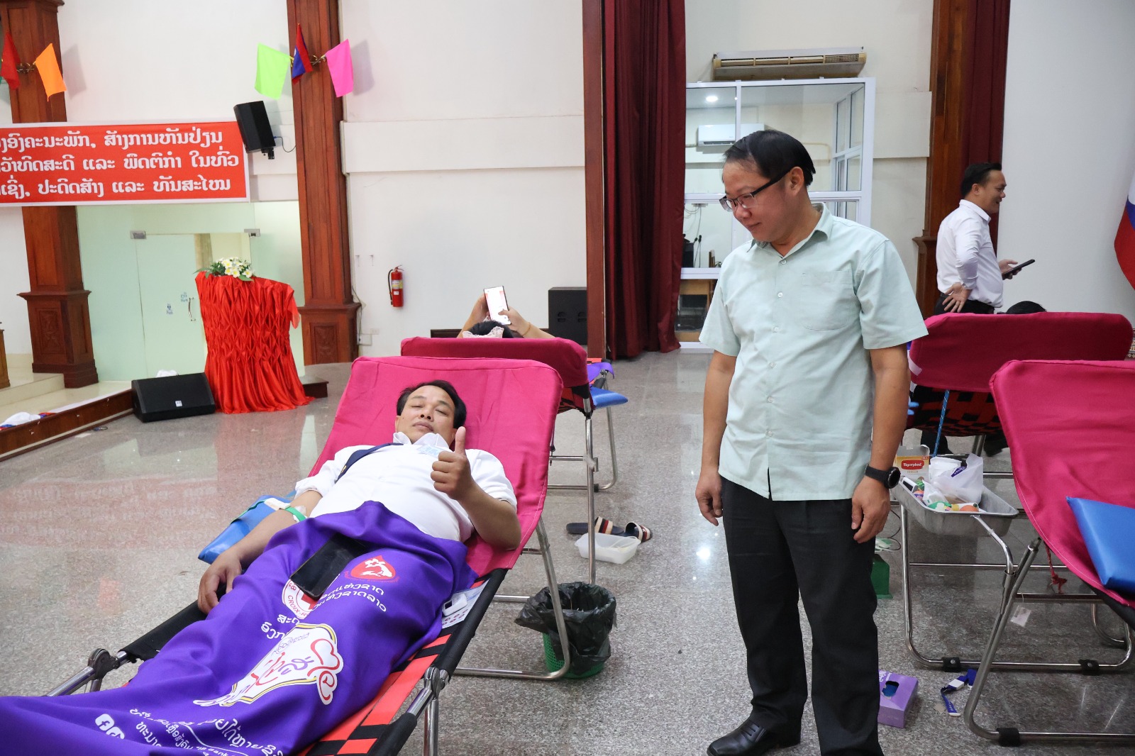 ພິທີດັ່ງກ່າວ ໄດ້ດຳເນີນໄປພາຍໃຕ້ການນຳພາ ຂອງ ທ່ານ ປອ ສາຍຄຳ ມູນມະນີວົງ, ຄະນະບໍລິຫານງານພັກ, ຫົວໜ້າຄະນະປັດຊະຍາ, ທັງເປັນຜູ້ຊີ້ນຳວຽກງານອົງການຈັດຕັ້ງມະຫາຊົນ ຂອງ ສມປຊ. ພ້ອມດຽວກັນນີ້, ຍັງໄດ້ຮັບກຽດເຂົ້າຮ່ວມ ແລະ ອຳນວຍຄວາມສະດວກທາງດ້ານເຕັກນິກວິຊາການໂດຍ ທ່ານ ດຣ ວັນວິລຸນ ໄຊໂກສີ, ຫົວໜ້າພະແນກກວດກາຄຸນນະພາບ ແລະ ຄົ້ນຄວົ້າວິທະຍາສາດ ຈາກສະຖາບັນເລືອດແຫ່ງຊາດ, ອົງການກາແດງລາວ.
