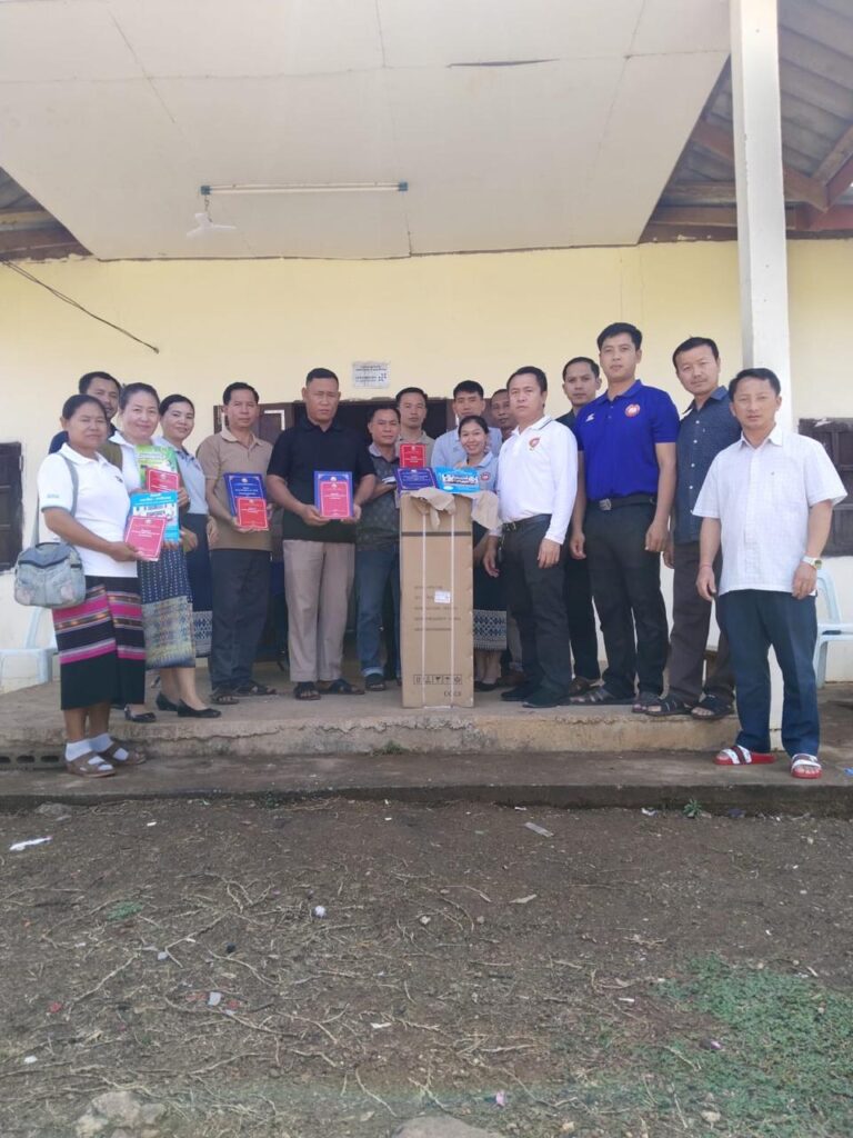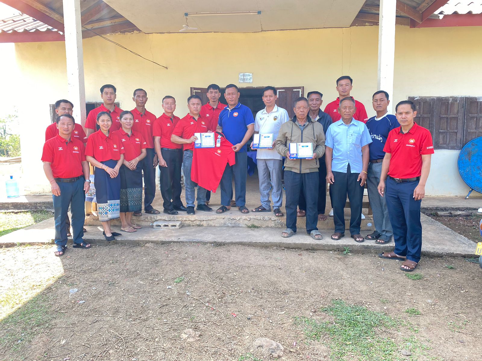 ໃນໂອກາດດັ່ງກ່າວ, ຄະນະນັກສຶກສາ ໄດ້ມອບເຄື່ອງທີ່ລະນຶກຈຳນວນໜຶ່ງ ໃຫ້ຄະນະພັກ-ອຳນາດການປົກຄອງ ບ້ານ ປະກອບມີປື້ມສັງລວມກົດໝາຍຈໍານວນ 15 ຫົວ, ກົດໝາຍວ່າດ້ວຍການດໍາເນີນຄະນະດີອາຍາ 6 ຫົວ, ປື້ມວາລະສານທິດສະດີການເມືອງ ແລະການປົກຄອງ ຈຳນວນ 60 ຫົວ, ຕູ້ໃສ່ນ້ຳຮ້ອນ-ນ້ຳເຢັນ ຈຳນວນ 1 ໜ່ວຍ, ເສື້ອຍືດໂປໂລ ຈຳນວນ 9 ຜືນ ລວມມູນຄ່າທັງໝົດ 2,780,000 ກີບ (ສອງລ້ານເຈັດແສນແປດສິບພັນກີບ).