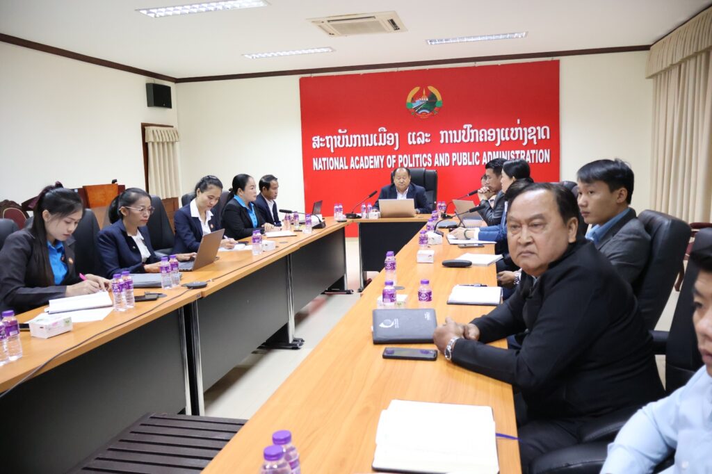ເພື່ອຮັດແໜ້ນການພົວພັນຮ່ວມມື ແລະ ແລກປ່ຽນບົດຮຽນທາງດ້ານທິດສະດີ-ພຶດຕິກຳ ລະຫວ່າງ ສອງພັກ ລາວ-ຈີນ, ສະຖາບັນການເມືອງ ແລະ ການປົກຄອງແຫ່ງຊາດ (ສມປຊ) ໂດຍສະເພາະ ຄະນະກໍ່ສ້າງພັກ ແລະ ປະຫວັດສາດພັກ ໄດ້ຮ່ວມກັບ ໂຮງຮຽນພັກກອມມູນິດຈີນ ແຂວງກຸ່ຍໂຈ ສປ ຈີນ ຈັດກອງປະຊຸມສຳມະນາວິທະຍາສາດຂຶ້ນ ໃນຕອນເຊົ້າວັນທີ 11 ມີນາ 2026. ກອງປະຊຸມດັ່ງກ່າວ ໃຫ້ກຽດເປັນປະທານຮ່ວມໂດຍ ທ່ານ ປອ ກູ້ຢ່າງ ສີສົມບຼົ່ງ ຮອງຫົວໜ້າຄະນະກໍ່ສ້າງພັກ ແລະ ປະຫວັດສາດພັກ (ຝ່າຍລາວ) ແລະ ທ່ານ ເຈີ້ງ ຕົງເຊິ່ງ ຫົວໜ້າພາກວິຊາສ້າງສາພັກ (ຝ່າຍ ສປ ຈີນ) ໂດຍມີບັນດາຄະນະພາກວິຊາ ທັງສອງຝ່າຍ ຄູ-ອາຈານ ເຂົ້າຮ່ວມຢ່າງພ້ອມພຽງ.