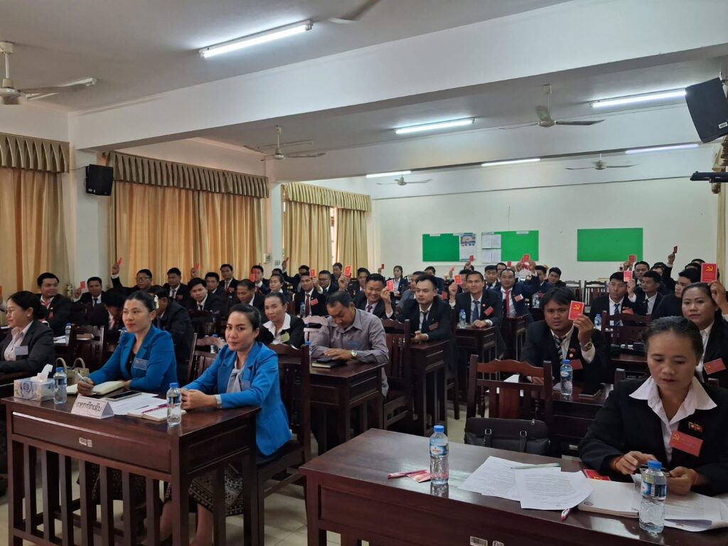 ໃນກອງປະຊຸມໄດ້ມີການໃຊ້ສິດປະຊາທິປະໄຕ ເຂົ້າໃນການເລືອກຕັ້ງຄະນະພັກຊຸດໃໝ່ ຊຶ່ງກອງປະຊຸມໄດ້ດຳເນີນໄປດ້ວຍບັນຍາກາດແຫ່ງຄວາມສາມັກຄີ ແລະຜູ້ແທນກອງປະຊຸມ ໄດ້ພ້ອມກັນໃຊ້ສິດປະຊາທິປະໄຕຂອງຕົນ ປ່ອນບັດເລືອກຕັ້ງເອົາຄະນະໜ່ວຍພັກຊຸດໃໝ່ ບົນພື້ນຖານມາດຖານ ແລະເງື່ອນໄຂທີ່ກຳນົດໄວ້, ເພື່ອເປັນແກນນຳໃນການສືບຕໍ່ຊີ້ນຳ-ນຳພາ ໜ່ວຍພັກໃນຕໍ່ໜ້າ. ຜ່ານການປ່ອນບັດເລືອກຕັ້ງ ແລະ ຜົນກອງປະຊຸມຄັ້ງປະຖົມມະລຶກ ໄດ້ຕົກລົງເຫັນດີເປັນເອກະພາບເລືອກເອົາບັນດາສະຫາຍ ທີ່ມີມາດຖານຄົບຖ້ວນເຂົ້າໃນ ຄະນະໜ່ວຍພັກຊຸດໃໝ່ ດັ່ງນີ້: