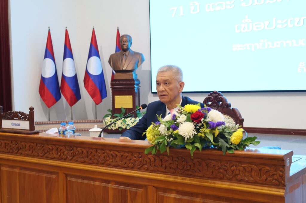 ຕໍ່ມາ, ທ່ານປະທານ ຍັງໄດ້ປາຖະກະຖາຫວນຄືນມູນເຊື້ອ ແລະ ໄຊຊະນະອັນຍິ່ງໃຫຍ່ ຂອງການປະຕິວັດ ພາຍໃຕ້ການນໍາພາ-ຊີ້ນໍາ ຂອງພັກປະຊາຊົນປະຕິວັດລາວ ຕະຫຼອດໄລຍະ 71 ປີ ທີ່ຜ່ານມາ. ການປາຖະກະຖາຄັ້ງນີ້ ແມ່ນແນໃສ່ໂຄສະນາ-ສຶກສາອົບຮົມໃຫ້ພະນັກງານ, ສະມາຊິກພັກ, ນັກສຶກສາ ໄດ້ຮັບຮູ້, ເຂົ້າໃຈ ແລະ ສາມາດເສີມຂະຫຍາຍມູນເຊື້ອປະຕິວັດ ຂອງພັກ ແລະ ຂອງຊາດລາວເຮົາ.