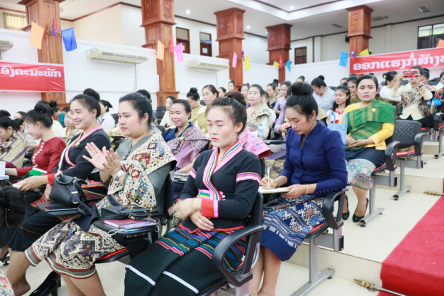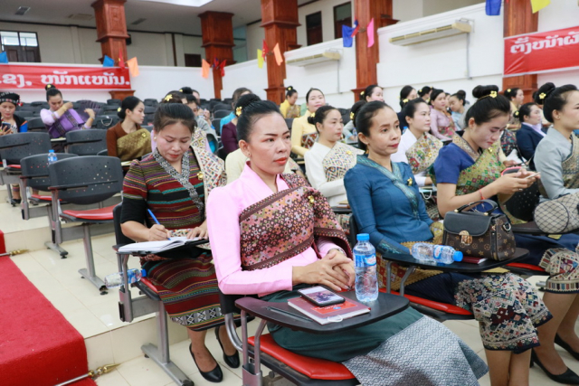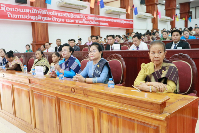 ໃນຕອນທ້າຍຂອງພິທີທີ່ມີຄວາມໝາຍນີ້ ທ່ານປະທານໃນພິທີໄດ້ໂອ້ລົມ ເຊິ່ງທ່ານໄດ້ຍ້ອງຍໍຊົມເຊີຍຄະນະນໍາ ສະຫະພັນແມ່ຍິງ ສມປຊ ທີ່ຍາດໄດ້ຜົນງານໃນຫຼາຍດ້ານໃນໄລຍະທີ່ຜ່ານມາ ເປັນຕົ້ນແມ່ນໄດ້ເປັນເຈົ້າການນໍາພາ-ຊີ້ນໍາເອື້ອຍນ້ອງແມ່ຍິງ ທົ່ວ ສມປຊ ເຮັດວຽກການເມືອງແນວຄິດ ເຊິ່ງເຮັດໃຫ້ສະມາຊິກແມ່ຍິງໄດ້ຮັບການເຊື່ອມບັນດາເອກະສານທີ່ສໍາຄັນຂອງພັກ-ລັດ ສ້າງຄວາມເຂົ້າໃຈທີ່ຖືກຕ້ອງໃນແນວທາງນະໂຍບາຍຂອງພັກໃຫ້ແກ່ສະມາຊິກແມ່ຍິງ ເຮັດໃຫ້ສະມາຊິກແມ່ຍິງມີຄວາມເຊື່ອໝັ້ນຕໍ່ການນໍາພາຂອງພັກ, ມີຄວາມອຸ່ນອ່ຽນທຸ່ນທ່ຽງ, ໜັກແໜ້ນໃນການປະຕິບັດໜ້າທີ່ວຽກງານ ກໍຄືເຮັດໃຫ້ຊີວິດຄອບຄົວມີຄວາມສະຫງົບສຸກ. ນອກນັ້ນ, ການຈັດຕັ້ງສະຫະພັນແມ່ຍິງພາຍໃນ ສມປຊ ແຕ່ລະຂັ້ນຕ້ອງເອົາໃຈໃສ່ເປັນເຈົ້າການຕິດຕາມຊຸກຍູ້ສະມາຊິກຂອງຕົນໃຫ້ໄດ້ຮັບການກໍ່ສ້າງໃນທຸກດ້ານ ເພື່ອໃຫ້ແມ່ຍິງມີມາດຖານເງື່ອນໄຂທີ່ຄົບຖ້ວນ ແລະໄດ້ຮັບໂອກາດໃນໜ້າທີ່ວຽກງານເທົ່າທຽມກັບເພດຊາຍ.