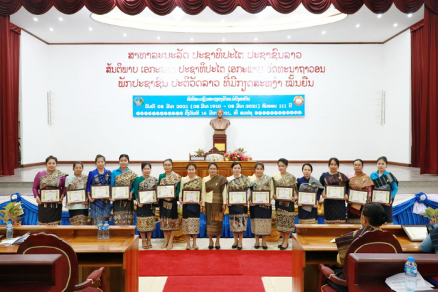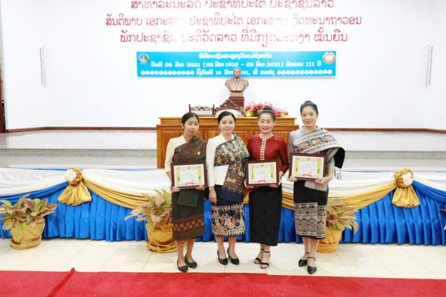 ສະຫະພັນ ແມ່ຍິງ ສະຖາບັນການເມືອງ ແລະການປົກຄອງສະເຫຼີມສະຫຼອງວັນແມ່ຍິງສາກົນ ຄົບຮອບ 111 ປີ (8 ມີນາ 1910-8 ມີນາ 2021) ພ້ອມທັງສະຫຼຸບຜົນງານແມ່ຍິງ 3 ດີ. ໃນພິທີ ໃຫ້ກຽດເປັນປະທານຂອງທ່ານ ປທ ນາງ ບຸນມີ ຈຸນລະຈັກ ຮອງເລຂາຄະນະບໍລິຫານງານພັກ, ຮອງຫົວໜ້າ ສມປຊ, ສະມາຊິກສະພາແຫ່ງຊາດ ຊຸດທີ IX, ມີທ່ານ ປທ ນາງ ພອນໄຊ ລາດຊະວົງ ຄະນະບໍລິຫານງານສູນກາງສະຫະພັນແມ່ຍິງລາວ, ທ່ານ ປອ ນາງ ລຳພູນ ດວນສຸວັນ ປະທານສະຫະພັນແມ່ຍິງ ສມປຊ ພ້ອມດ້ວຍນຄະນະ ແລະສະມາຊິກແມ່ຍິງ 100 ກວ່າທ່ານເຂົ້າຮ່ວມ.
