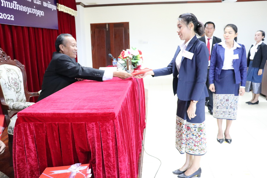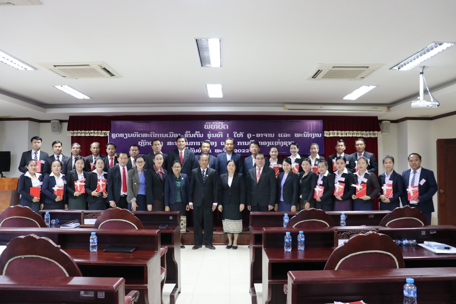 ສະນັ້ນ, ໃນຕອນແລງຂອງວັນທີ 11 ພະຈິກ 2022 ຈຶ່ງໄດ້ມີພິທີມອບໃບຢັ້ງຢືນ ທິດສະດີການເມືອງຂັ້ນຕົ້ນ, ໃຫ້ກຽດເປັນປະທານໂດຍ: ທ່ານ ຮສ ພູວົງ ອຸ່ນຄຳແສນ ກຳມະການສູນກາງພັກ, ເລຂາຄະນະບໍລິຫານງານພັກ, ຫົວໜ້າສະຖາບັນການເມືອງ ແລະ ການປົກຄອງແຫ່ງຊາດ, ມີຕາງໜ້າຄະນະຫ້ອງການ, ຄະນະກົມ, ຄະນະຕ່າງໆ ແລະສູນຕ່າງໆ.