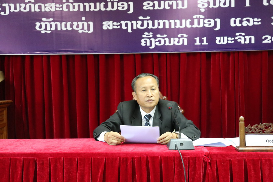 1) ພວກສະຫາຍແມ່ນພະນັກງານລຸ້ນສືບທອດຂອງສະຖາບັນພວກເຮົາ, ອະນາຄົດຂອງສະຖາບັນຝາກຄວາມຫັວງນໍາບັນດາສະຫາຍ ທີີ່ນັັ່ງນໍາກັນຢູ່ນີ້ ແນ່ນອນຜົນສໍາເລັດຂອງແຕ່ລະຄົນມັນຕ່າງກັນ, ແຕ່ສິ່ງສໍາຄັນພວກເຮົາຈະພ້ອມກັນຂຸດຄົ້ນຄວາມອາດສາມາດບົ່ມຊ້ອນທີີ່ມີຢູ່ພາຍໃນພວກສະຫາຍແນວໃດ ເພືີ່ອທິດທາງໃຫ້ແກ່ພາລະກິດຂອງສະຖາບັນໃຫ້ສໍາເລັດ. ຜ່ານການຮຽນ 3 ເດືອນຜ່ານມາແມ່ນໄດ້ປະກອບຄວາມຮູ້ກ່ຽວກັບທິດສະດີມາກ-ເລນິນ, ແນວຄິດ ໄກສອນ ພົມວິຫານ, ແນວທາງ, ແຜນນະໂຍບາຍ, ລະບຽບກົດໝາຍ, ມູນເຊື້ອອັນດີງາມຂອງຊາດ, ຂອງພັກ ແລະອືີ່ນໆໃຫ້ພວກສະຫາຍແລ້ວ, ແຕ່ຮຽກຮ້ອງໃຫ້ພວກເຮົາຄິດຄືນວ່າ: ເປົ້າໝາຍ, ເນື້ອໃນ, ແລະຄາດໝາຍຂອງຫັຼກສູດ ຢາກໃຫ້ພວກສະຫາຍໄດ້ຫຍັງ? ຂໍໃຫ້ນໍາເອົາໄປຄົ້ນຄິດໃຫ້ເລິກເຊິີ່ງ, ຮຽນໃຫ້ຮູ້, ຮູ້ແລ້ວສ້າງໃຫ້ມີການຫັນປ່ຽນຢ່າງຮອບດ້ານທາງດ້ານແນວຄິດ, ທັດສະນະ (ການເຄືີ່ອນໄຫວຕົວຈິງ), ການປະຕິບັດໜ້າທີ່ການເມືອງທີ່ການຈັດຕັ້ງມອບໝາຍໃຫ້, ການດໍາລົງຊີວິດຢູ່ໃນສັງຄົມ, ຖ້າຮຽນຮູ້, ແຕ່ບໍໍ່ມີການຫັນປ່ຽນກໍໍ່ບໍໍ່ມີຄວາມໝາຍຫຍັງສໍາລັບການຮຽນຂອງເຮົາ.